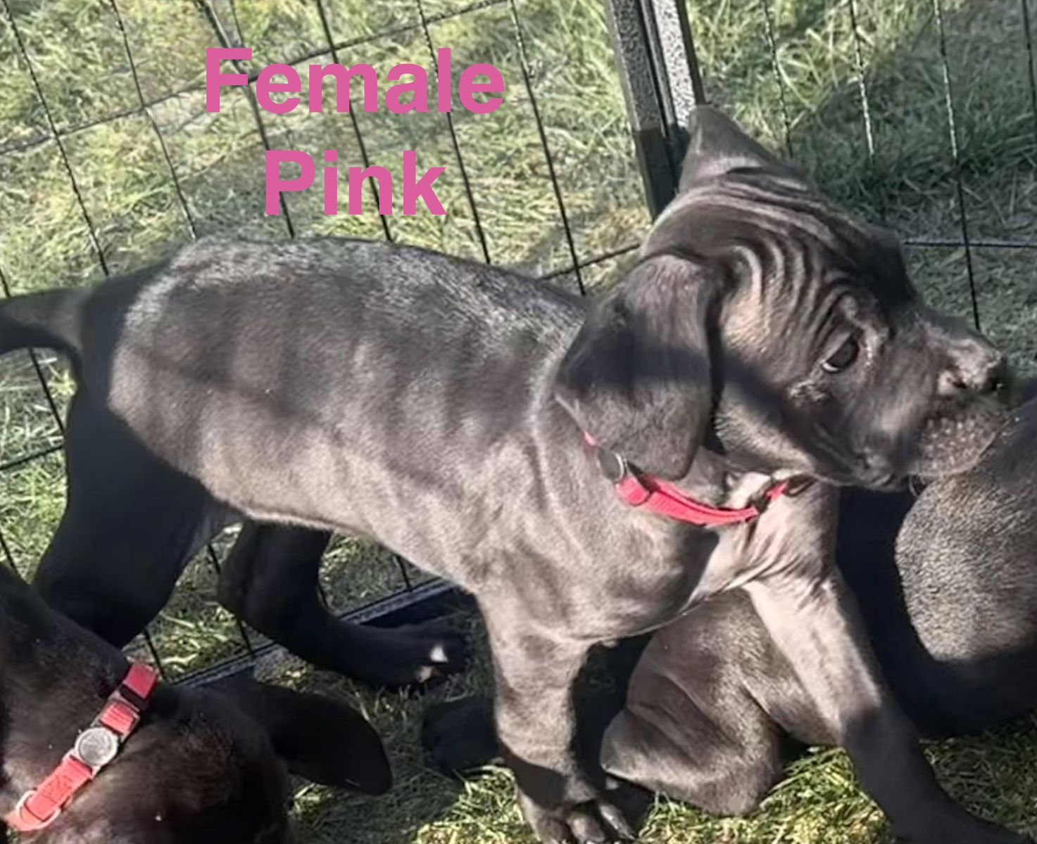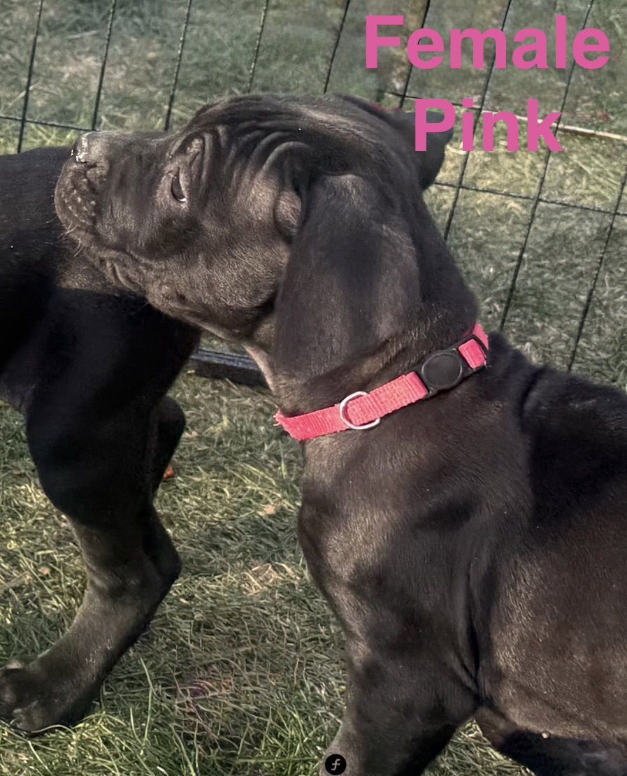 Beautiful litter of 7 puppies born on February 17, 2026, and ready for their new homes on April 17, 2026. There are 2 males blacks (light green, dark green, ) and 5 females blacks (pink, yellow, red, orange, and beige).