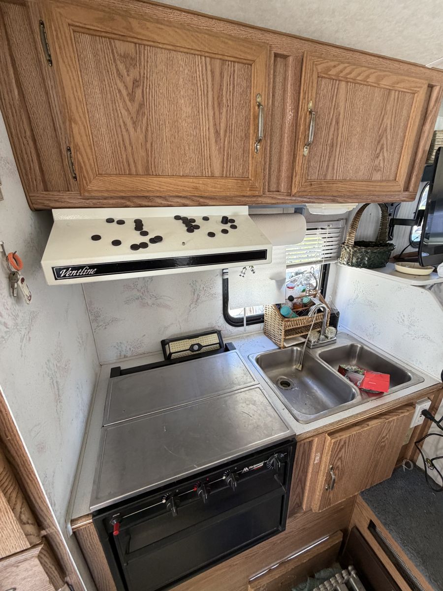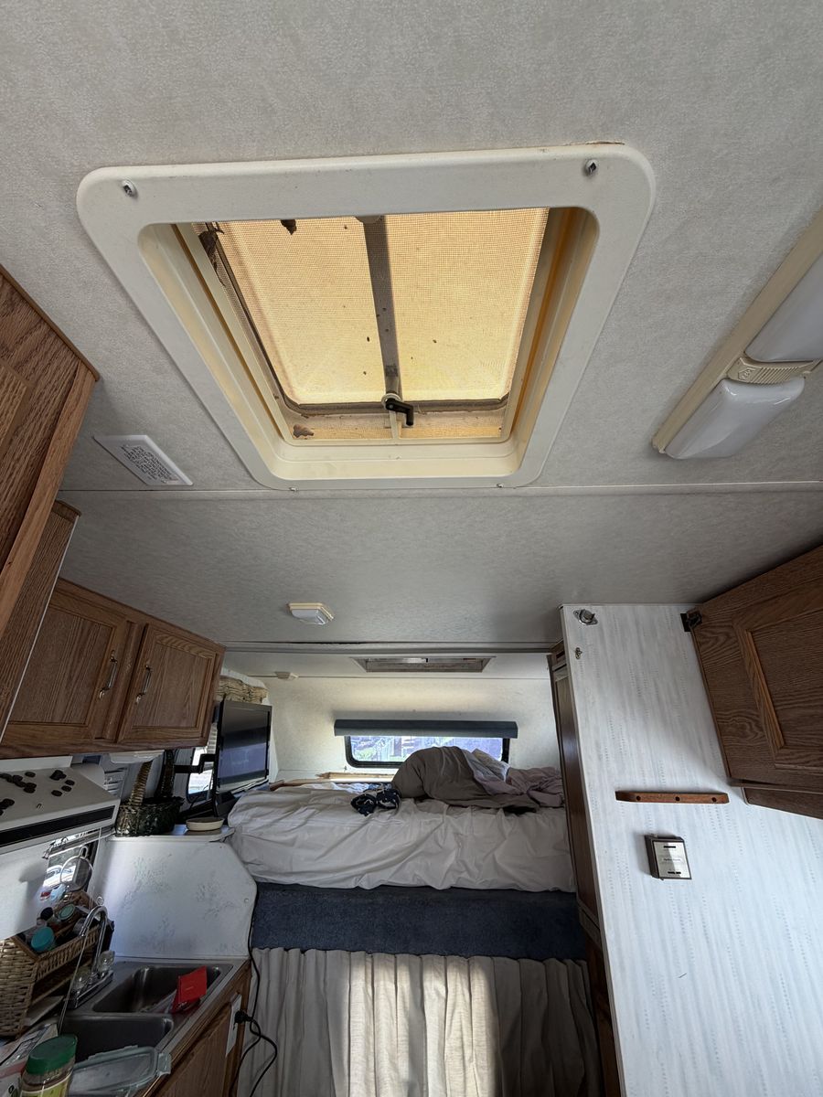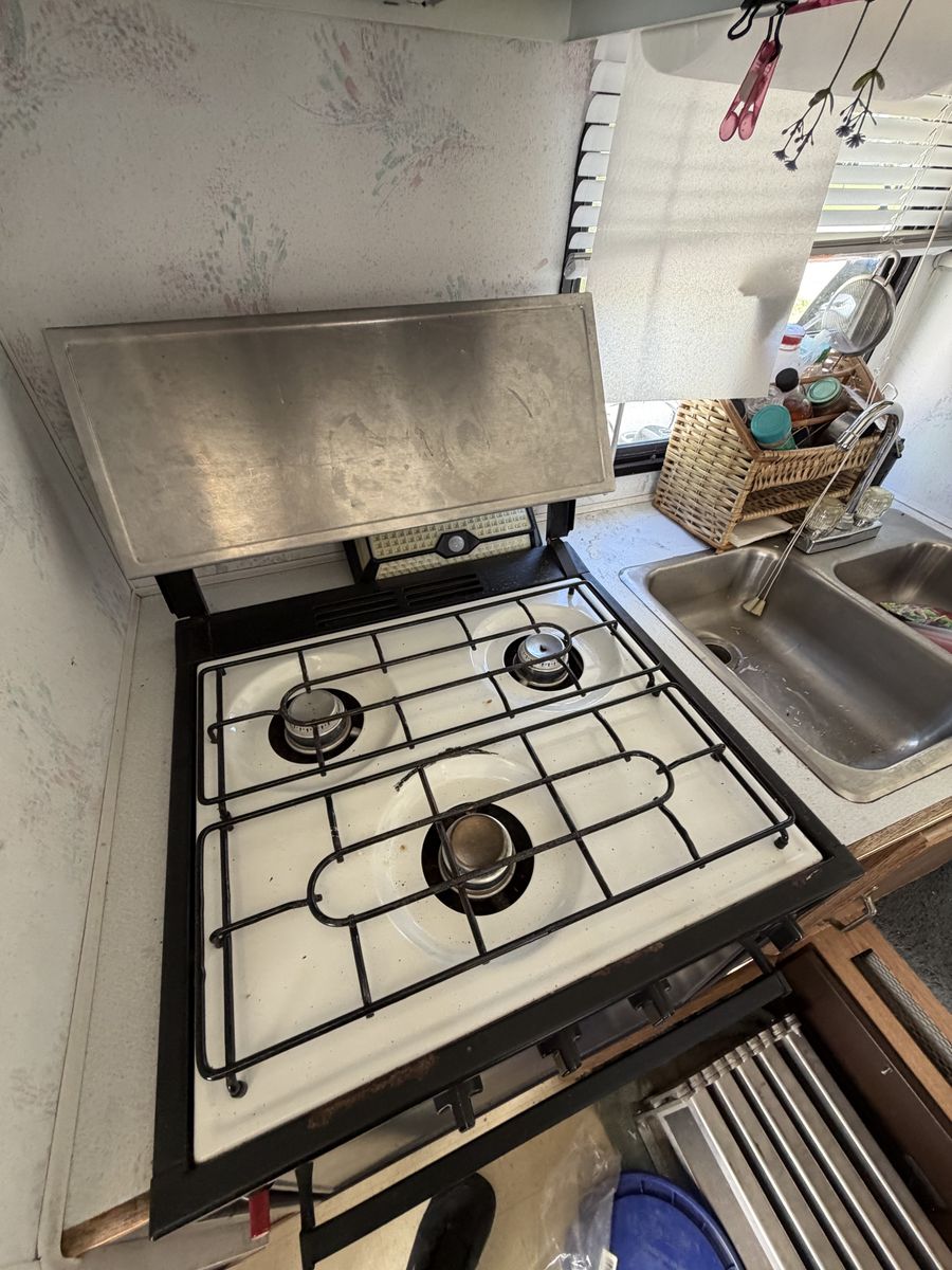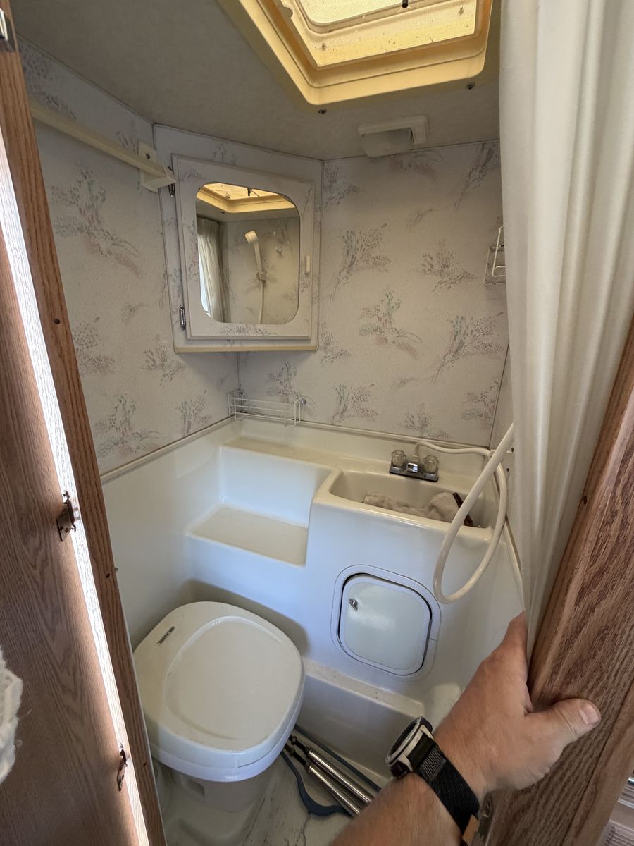 Full bathroom, dining table becomes bed, electric works, fridge works, water pumps work along with bathroom, stove works, tv can run off battery. Heat works, full propane. Lights inside and outside working.