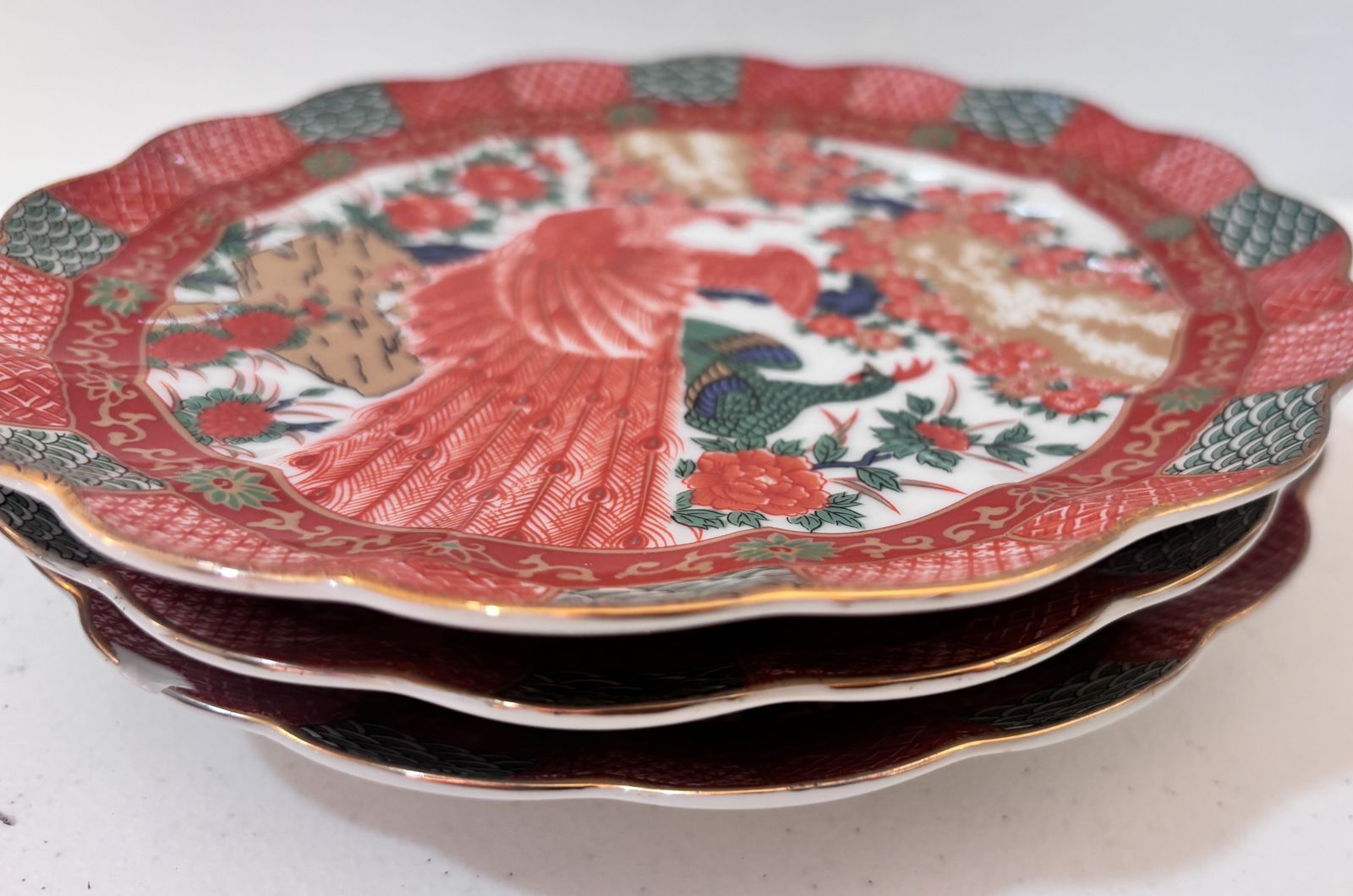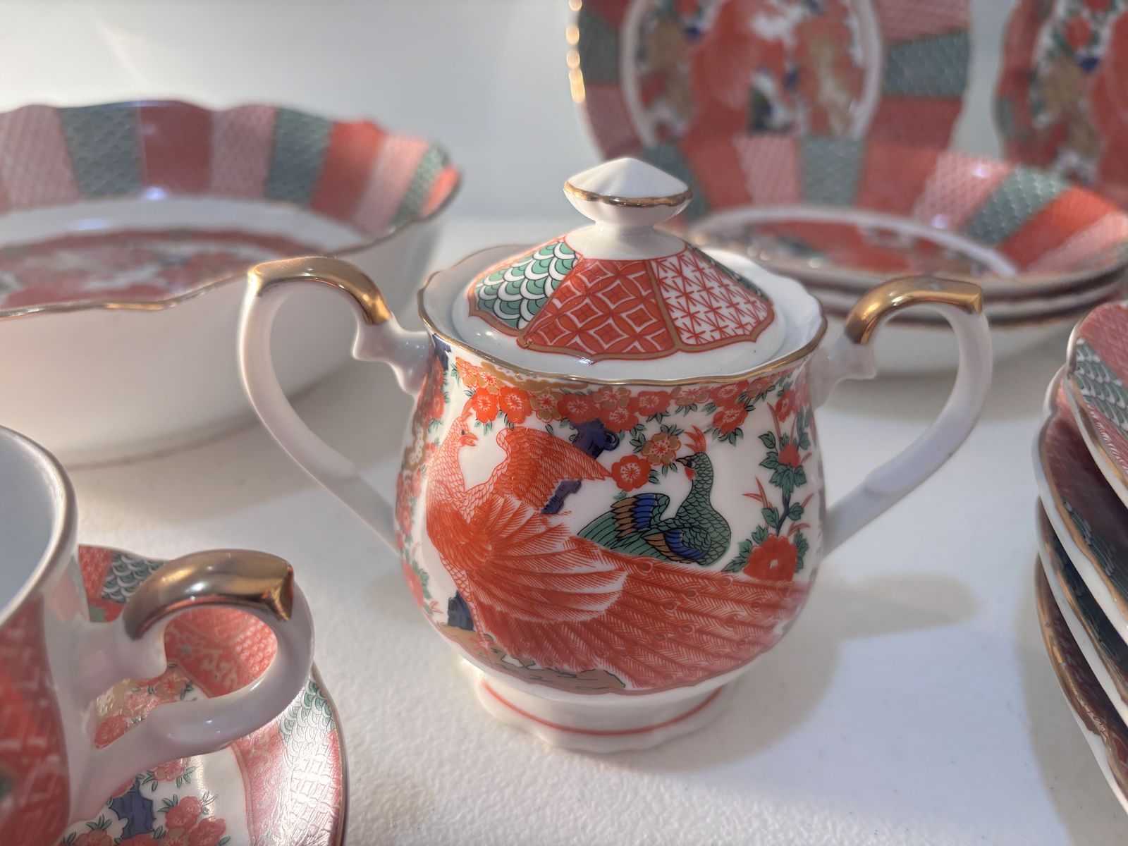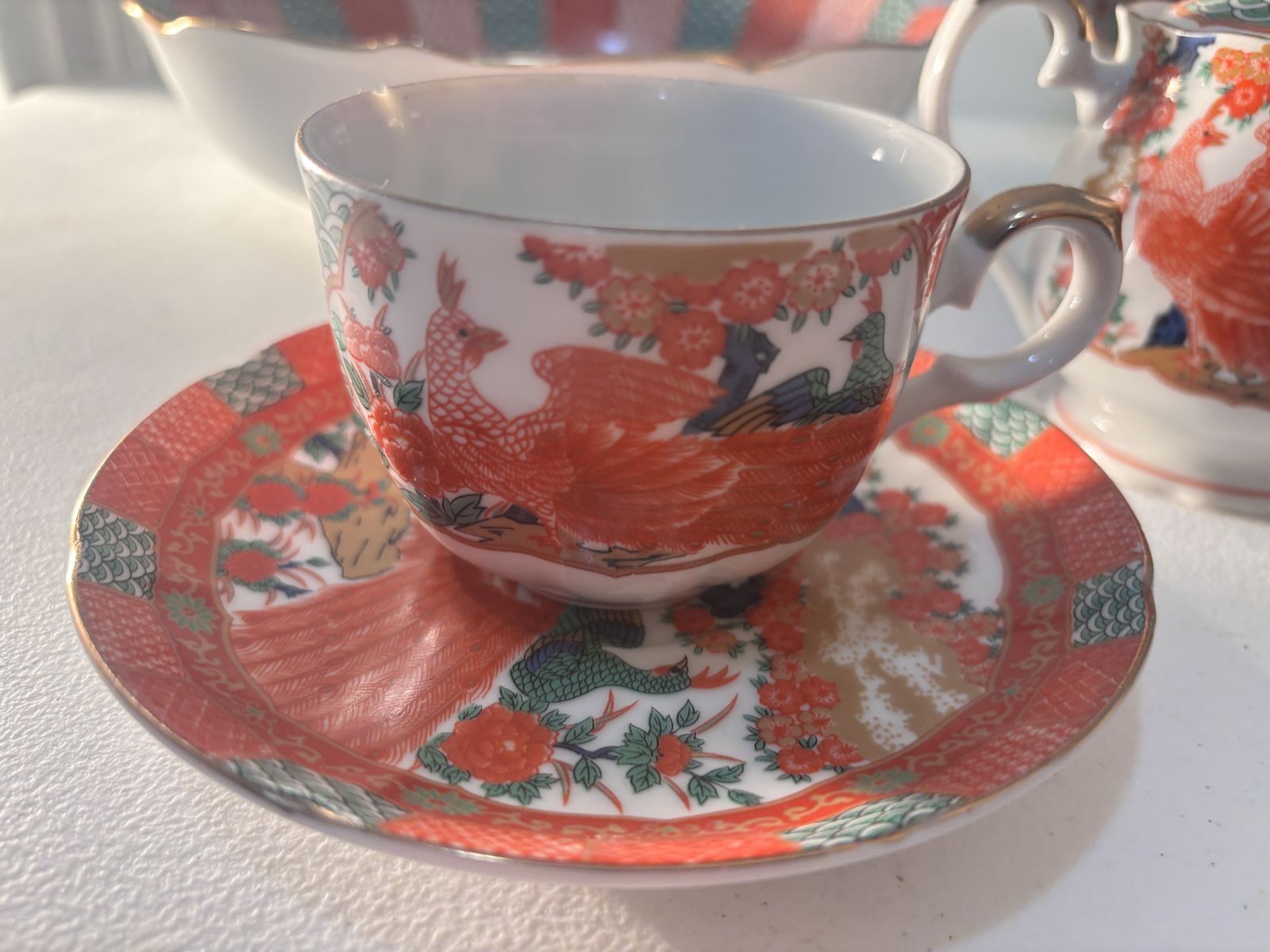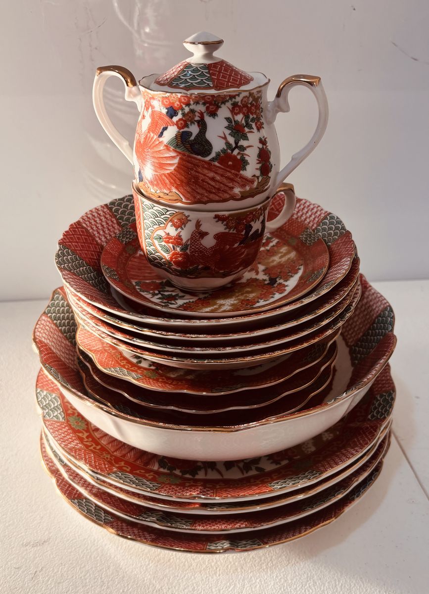 PayPalLot of 16 Pieces Arita Imari Red Peacock Charger Plates 12" Bowls Hand Painted. Not a complete set but in great condition except the tea cup has a small chip on it. If interested please call or text Jamie at 385-471-4333. Thanks