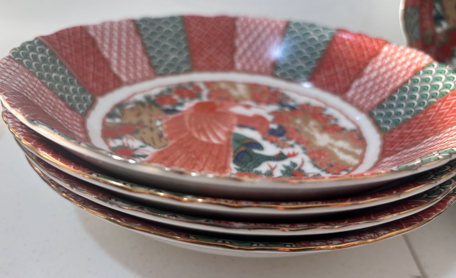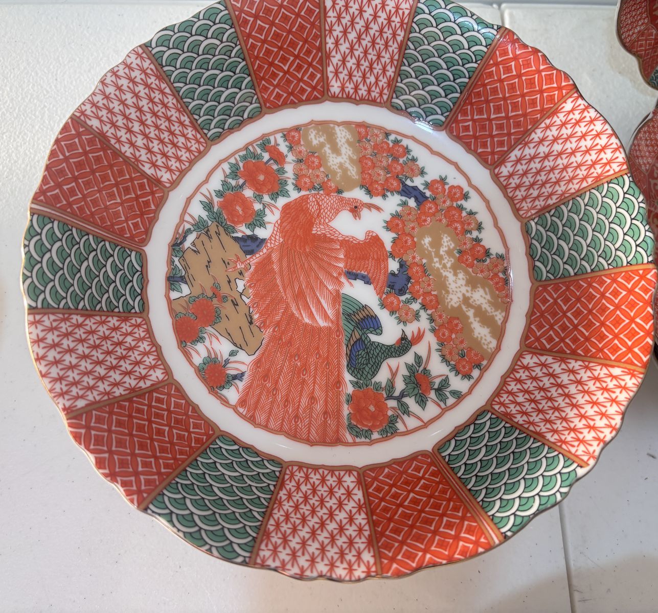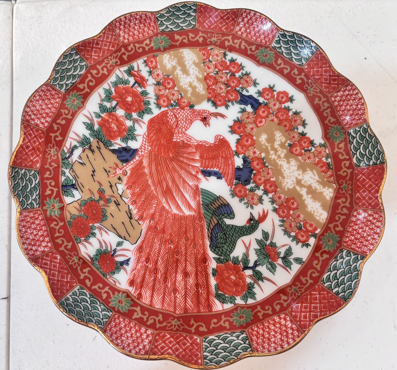 PayPalLot of 16 Pieces Arita Imari Red Peacock Charger Plates 12" Bowls Hand Painted. Not a complete set but in great condition except the tea cup has a small chip on it. If interested please call or text Jamie at 385-471-4333. Thanks