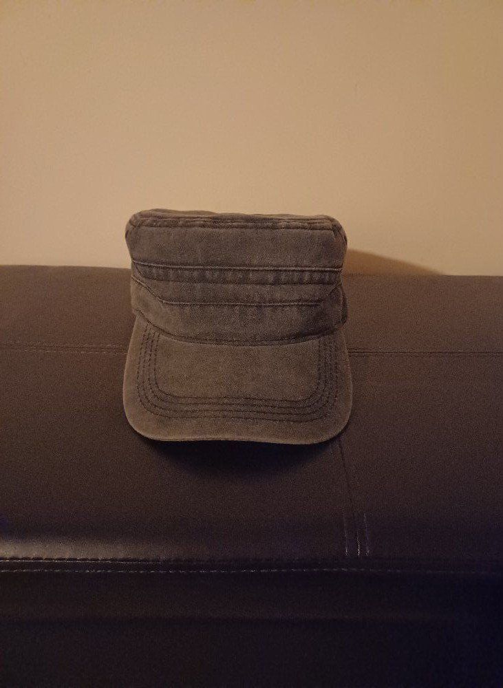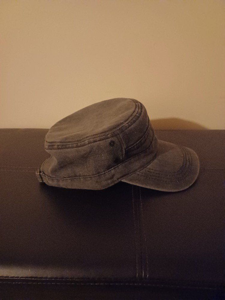 Dark gray, vintage washed cap. Adjusting buckle in back. Brand new.