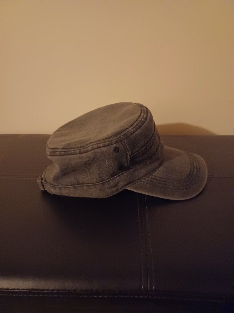 Dark gray, vintage washed cap. Adjusting buckle in back. Brand new.