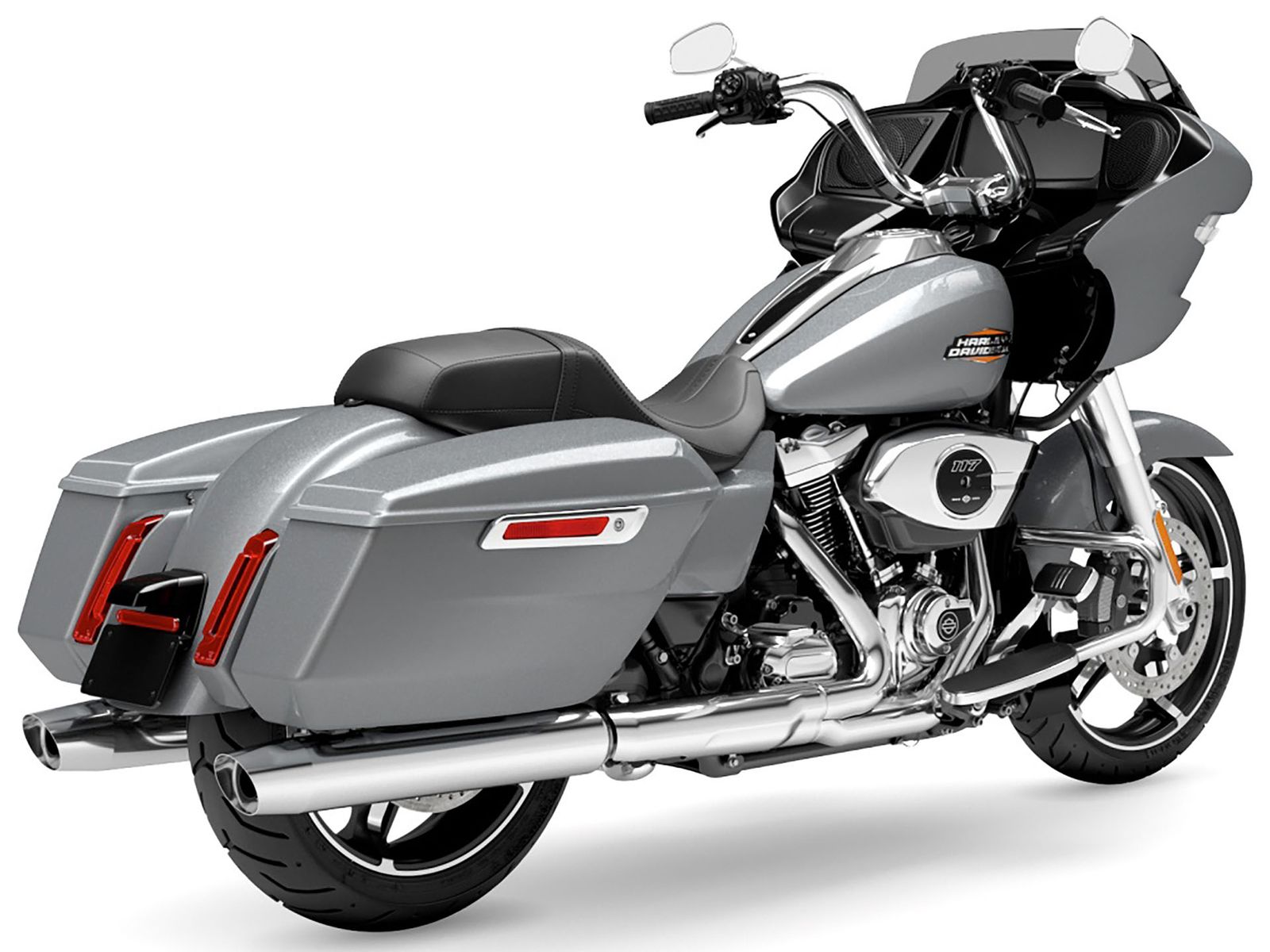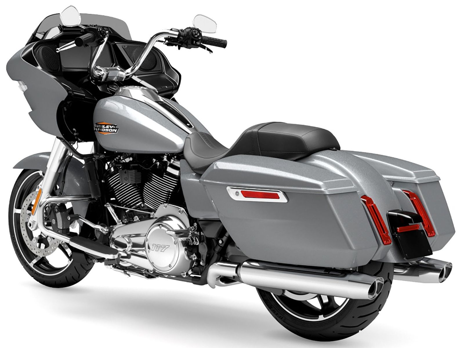 Tour de force. The Road Glide has an aerodynamic Sharknose fairing and a liquid-cooled Milwaukee-Eight 117 engine that produces 130 ft-lb of torque, while reduced weight makes handling more responsive. With customizable ride modes, Bluetooth connectivity, and a 12.3-inch touchscreen display, the Road Glide offers a refined mix of tech, style, and power.