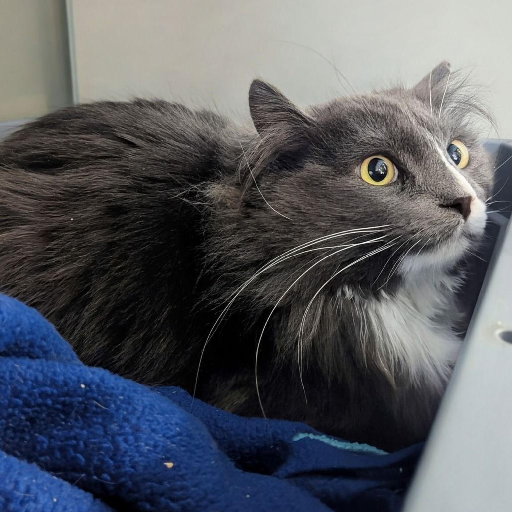 Meet Chase, a 2-year-old male with stunning long blue-grey fur and an adorable white stripe down his face that gives him a truly one-of-a-kind look. His soft, flowing coat and striking markings make him as eye-catching as he is charming. Chase has a gentle presence and is still showing us more of his personality each day. With time and a loving home, he’s sure to blossom into a wonderful companion who brings both beauty and quiet companionship into your life. If you’re looking for a unique, handsome cat to share your home with, Chase would love to meet you. Visit the Best Friends Lifesaving Center in Salt Lake City or TEXT (385) 405-5145 to meet them.