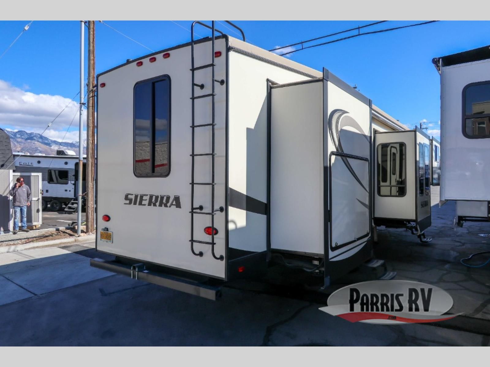 For your next camping trip you will want this Sierra 379FLOK fifth wheel in tow! From the front living room to the rear master bedroom there is plenty of room throughout this model for your family and a few friends. Outside there are double entry doors, a "One Touch Dometic 20' Electric Awning, an exterior kitchen, plus a bumper mount swivel gas grill. Almost straight in from the rear door is the spacious bathroom. Here there is a walk-in shower with etched tiles, and a closet that has been prepped for a washer and dryer. In the kitchen you will find residential countertops, an island with pendant lights, plus there is LED lighting throughout this model and so much more!