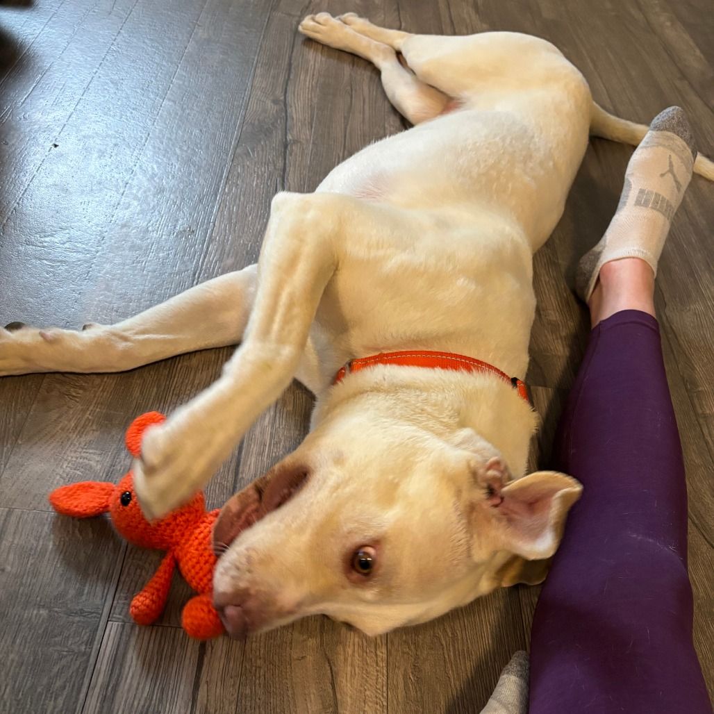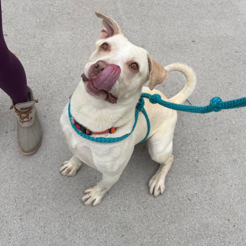 Daryl is a handsome white Lab mix boy with a heart as big as his happy tail wags. This gentle guy lives to love. Whether he’s leaning into you for pets, quietly sitting by your side, or greeting you like you’ve been gone for years (even if it was just a trip to the mailbox), Daryl makes every moment brighter. He’s the perfect mix of playful and polite. Daryl enjoys a good game of fetch and exploring the yard, but he’s just as content curling up next to you for a cozy nap. He has wonderful manners, a kind nature, and a calm, loving personality that makes him easy to adore. Daryl would thrive in a home where he can be part of the family — he’s the kind of dog who wants to be involved in everything, from movie nights to morning coffee on the porch. If you’re looking for a loyal companion who will shower you with unconditional love, Daryl is your guy. If you’re ready for a sweet, affectionate, tail-wagging best friend, Daryl is waiting to meet you! If you would like more info, please call/text our adoptions team at 385-405-5145. We are open seven days a week between 11am-7pm. There is no appointment required to meet our onsite available animals, so stop in today!