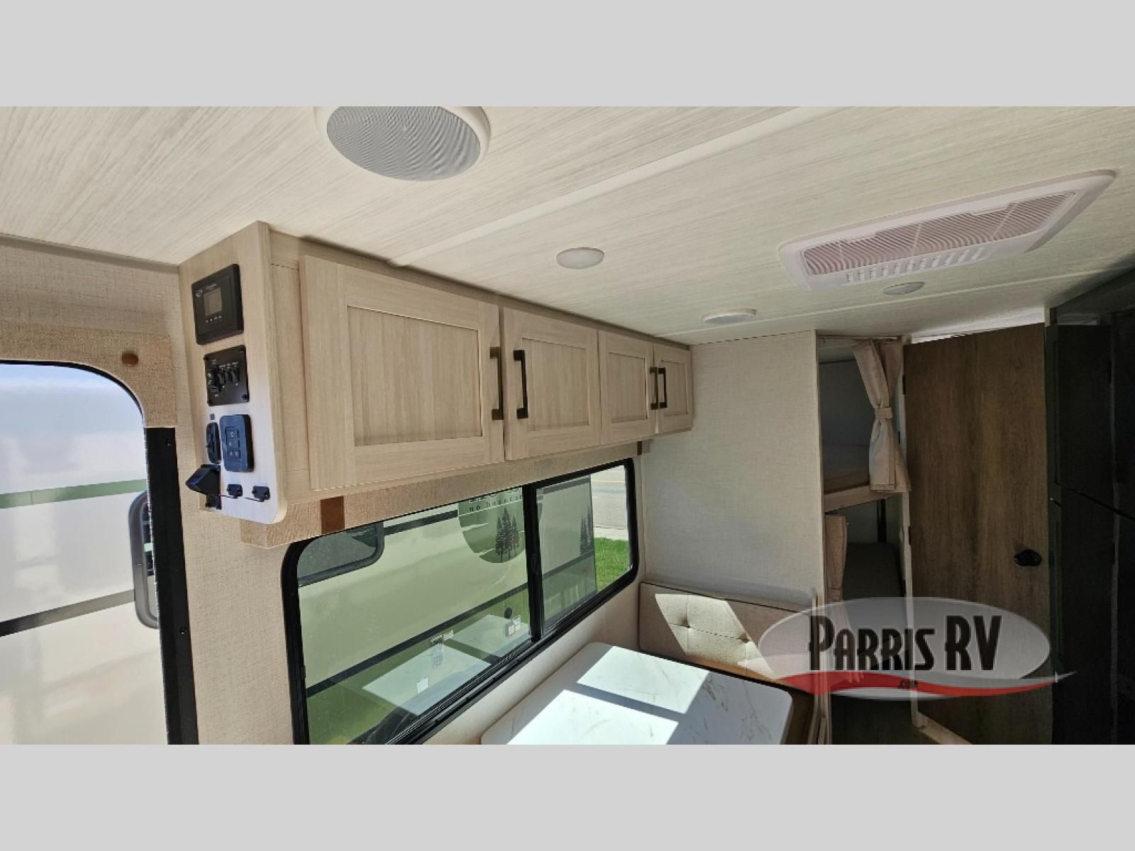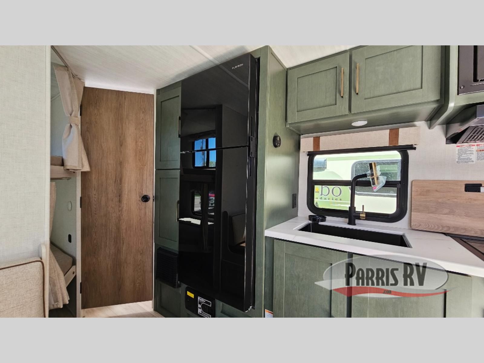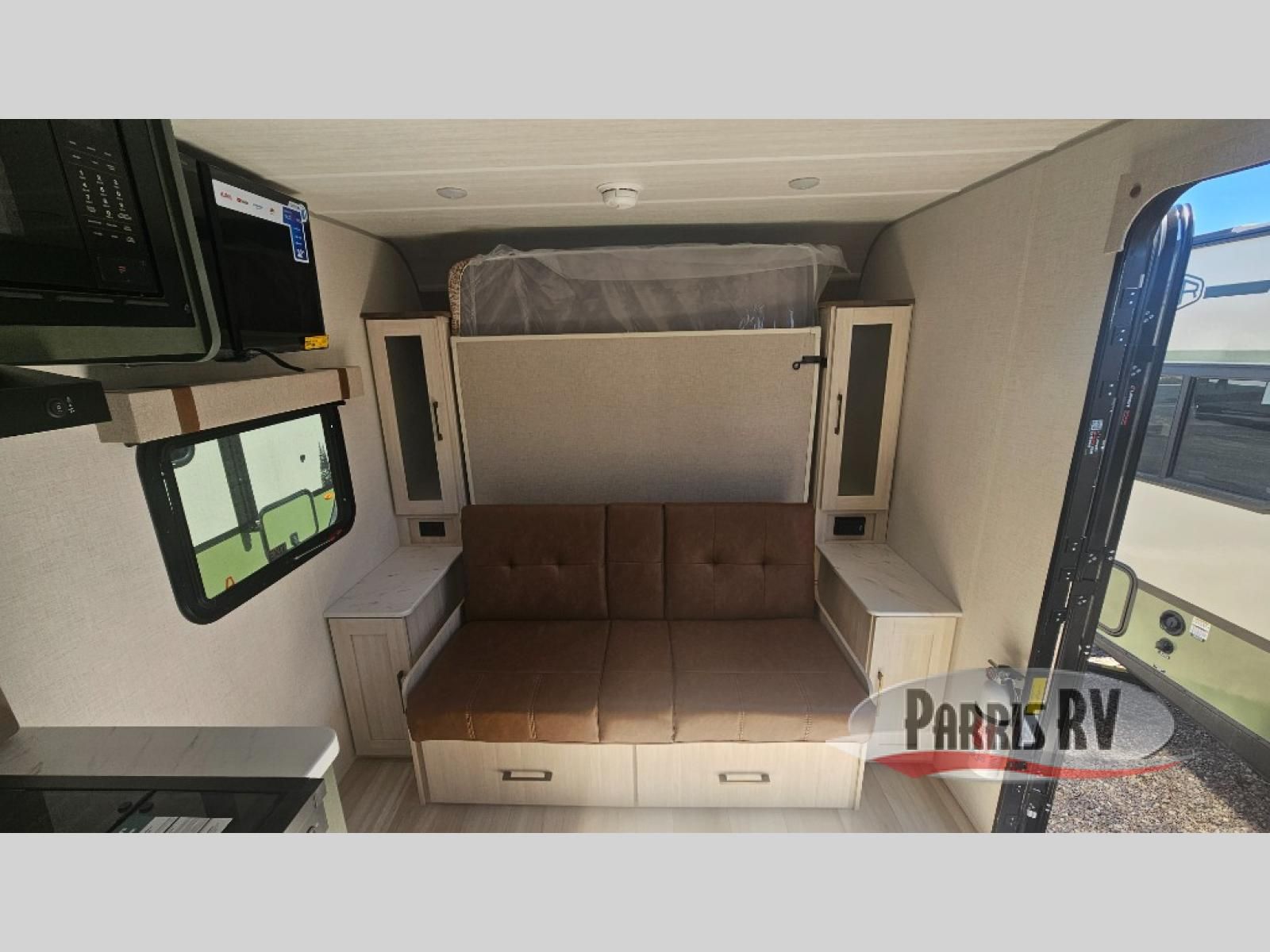 With this No Boundaries travel trailer, you can go to places you've never been before! The patio awning will protect you while you're outside having fun, and once you make your way inside, you can sit down at the booth dinette for some dinner. The 44" x 74" double-size bunks will give you extra sleeping space without taking up too much room, and the Murphy bed also utilizes space well by folding away during the day to reveal a sofa. Outside, you'll find slam latch cargo doors with pass-thru lighting, an outside kitchen, a pre-installed solar panel, and more! When the optional Beast Mode Package on this model is chosen, you'll enjoy a 400-watt solar package, a fresh water filter, a Maxxair roof vent cover, plus a Beast Mode independent suspension for better handling.