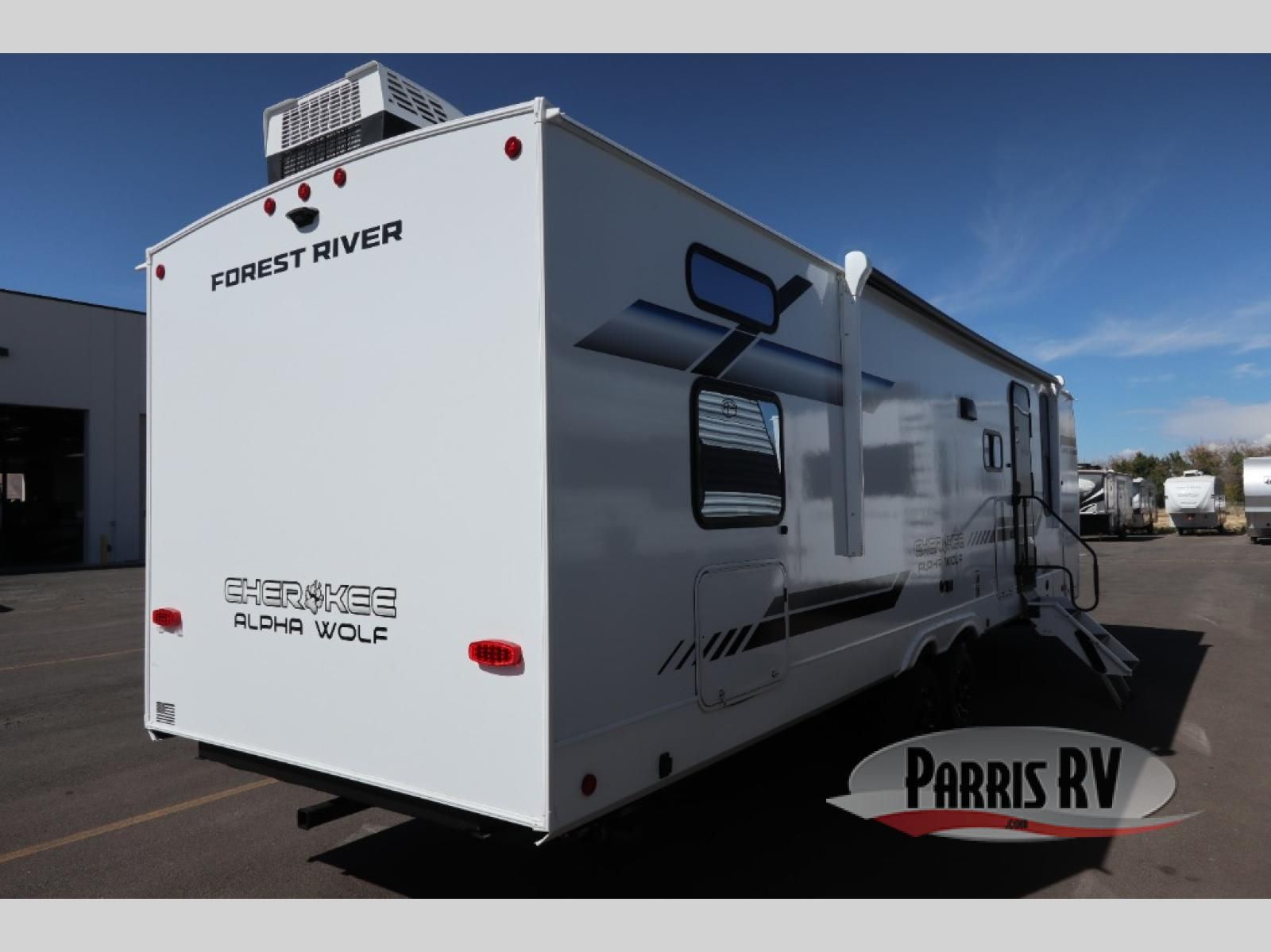 With any Cherokee Alpha Wolf travel trailer by Forest River you'll enjoy outstanding amenities, quality construction, and an affordable price. Each model features a "ToughBend" rigid skirt metal design, 5/8" tongue and groove plywood floor decking, and a "SuperTruss" roof structure that will hold up through years of camping memories. There is a pet friendly "clean sweep" floor design with no heat vents indoors, along with a super lumen lighting system, a 15,000 BTU quick cool central air conditioning, and many more comforts. There are many convenient exterior features such as, Leash Latch pet safety technology, an outside shower with hot and cold water, and exterior steps with oversized landing and quick release. The Weather Guard Package will add protection against the elements with an armored underbelly tank enclosure and forced air heat, thermo-control reflective safety glass windows, and upgraded laminated walls with block foam insulation!