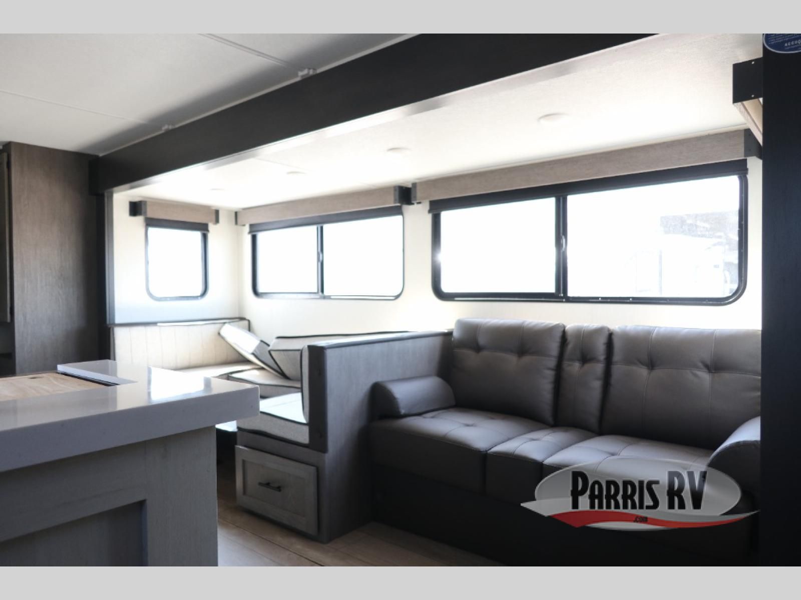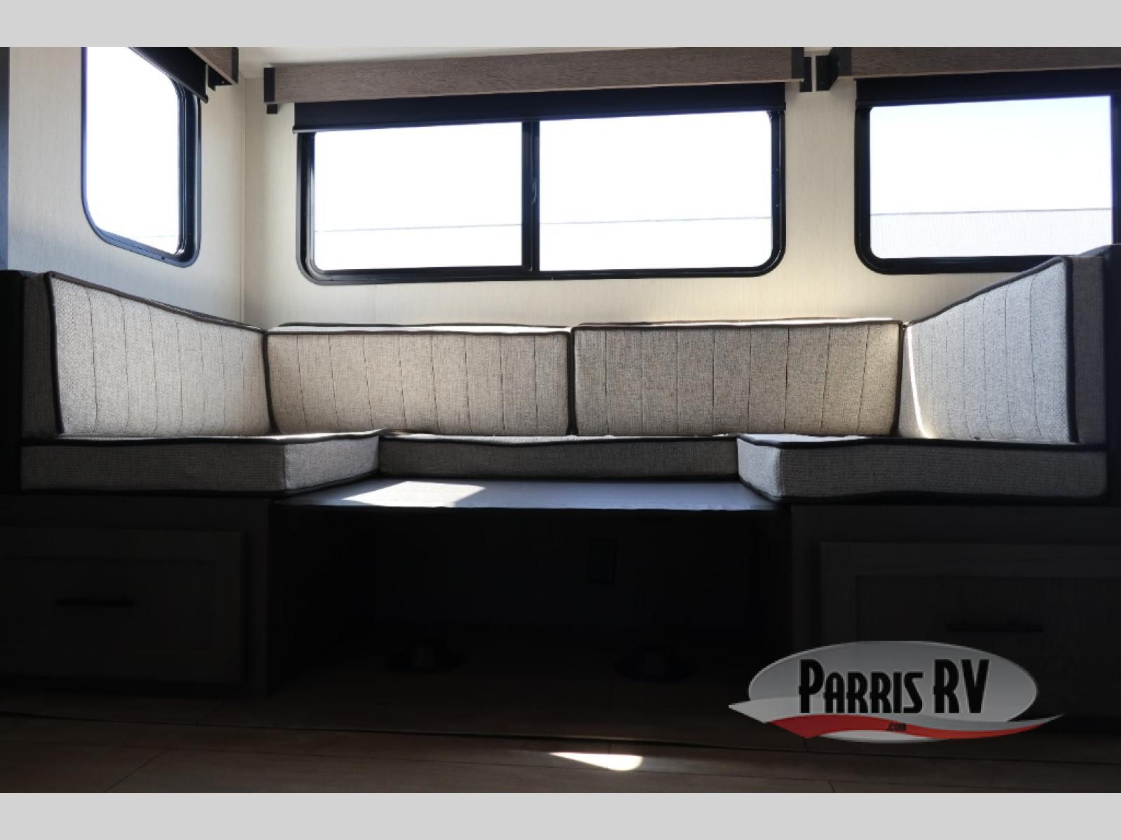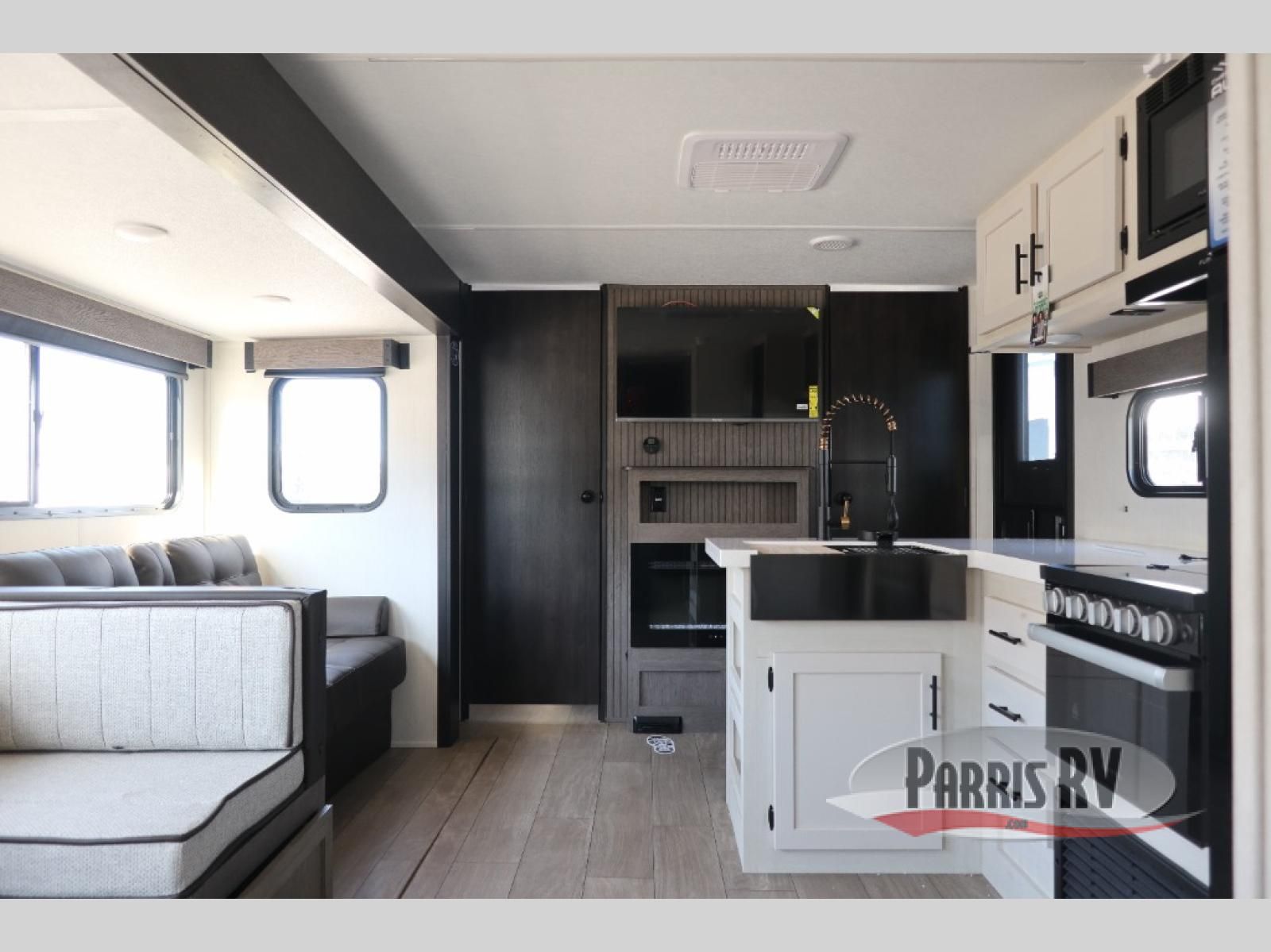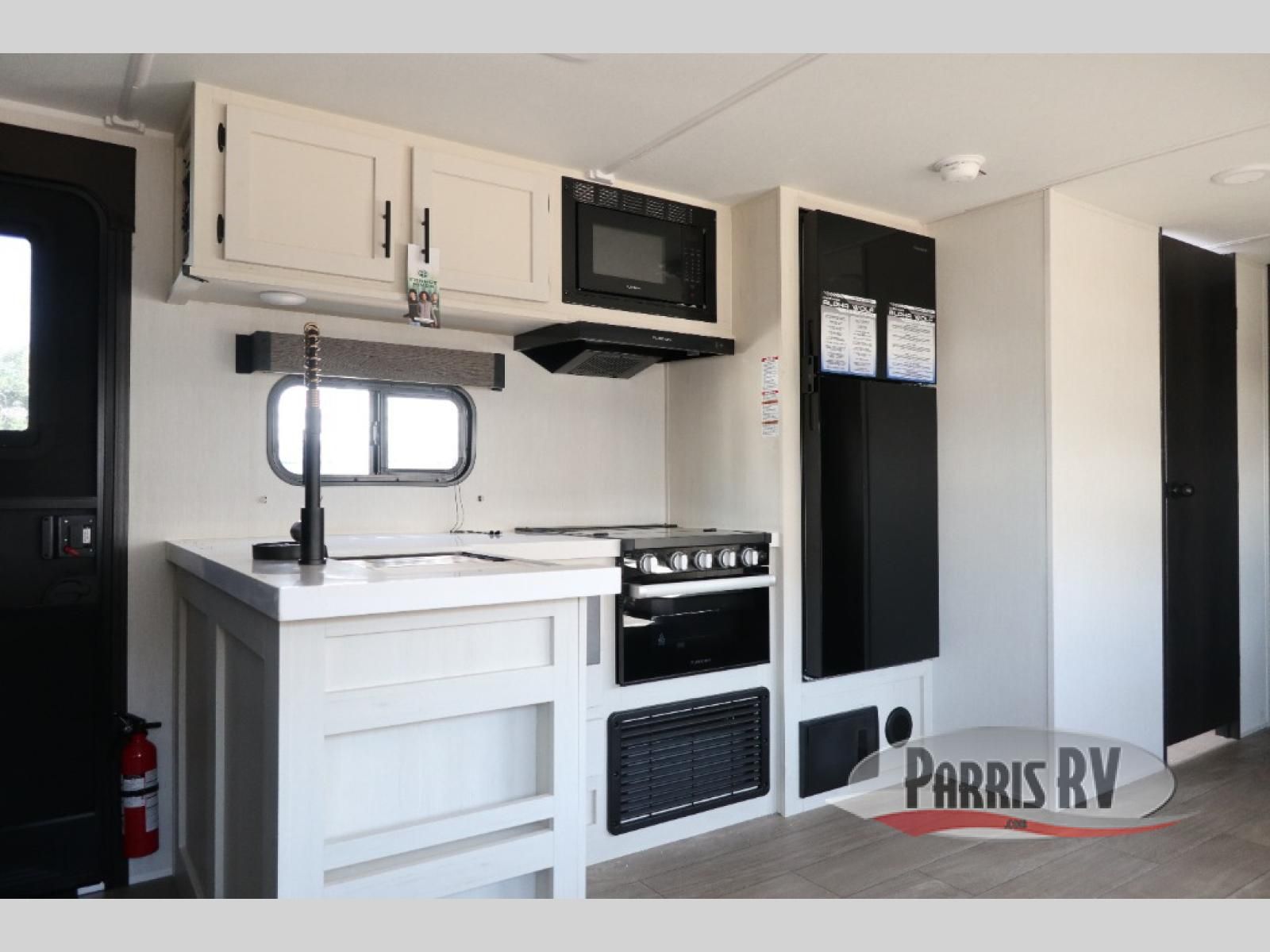 Looking for a spacious travel trailer to sleep nine or ten happy campers? You've found it in this Cherokee Alpha Wolf model with a handy outside kitchen, a bunkhouse with a dinette, a front private bedroom, and a large slide out! The main living and kitchen area has a U-shaped dinette to utilize as a dining table, game table, work station, and/or an extra sleeping space. There is also a jackknife sofa for seating, TV watching, or sleeping. From any seating area you can easily view the entertainment center and fireplace which is centered in the unit with doors on either side to the front private bedroom. You will also find a nice pantry and full kitchen amenities including a large sink, and residential-style refrigerator allowing you to easily create meals for your hungry crew. The exterior provides an 18' awning for an outdoor living area over the outside kitchen, and there is ample exterior storage for all of your camping gear like camp chairs, outside games, rugs, and more.