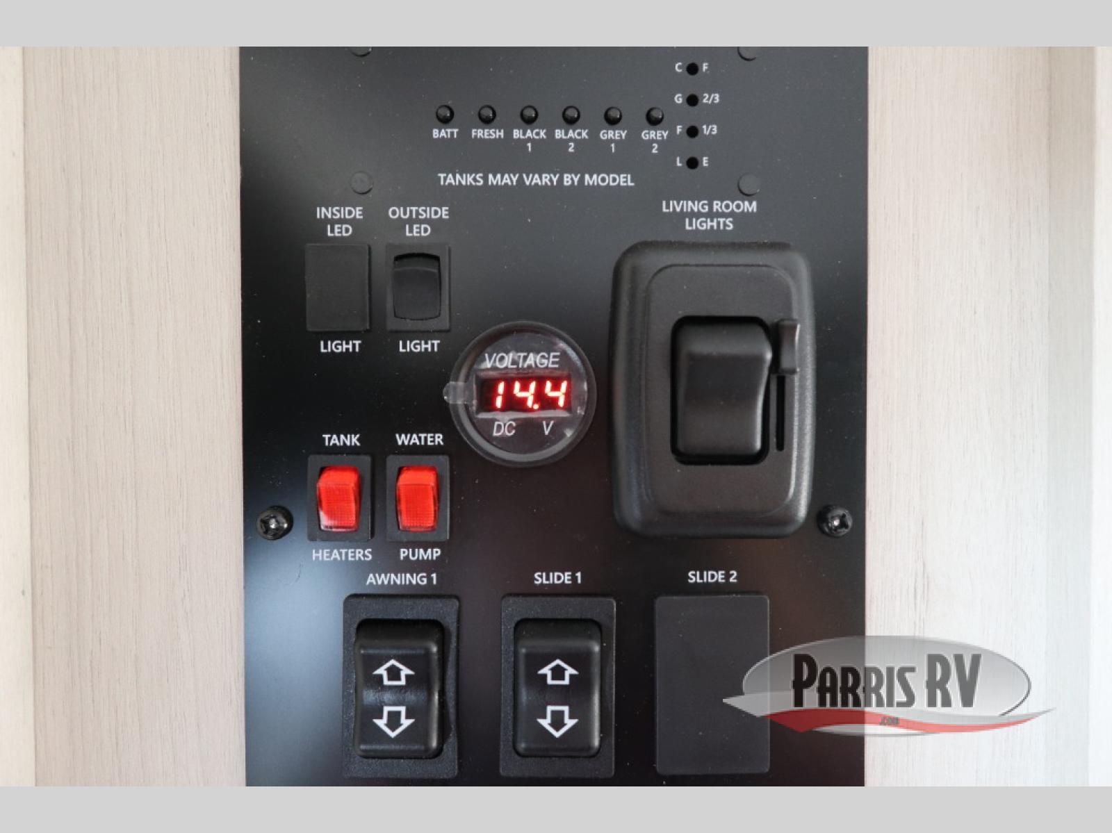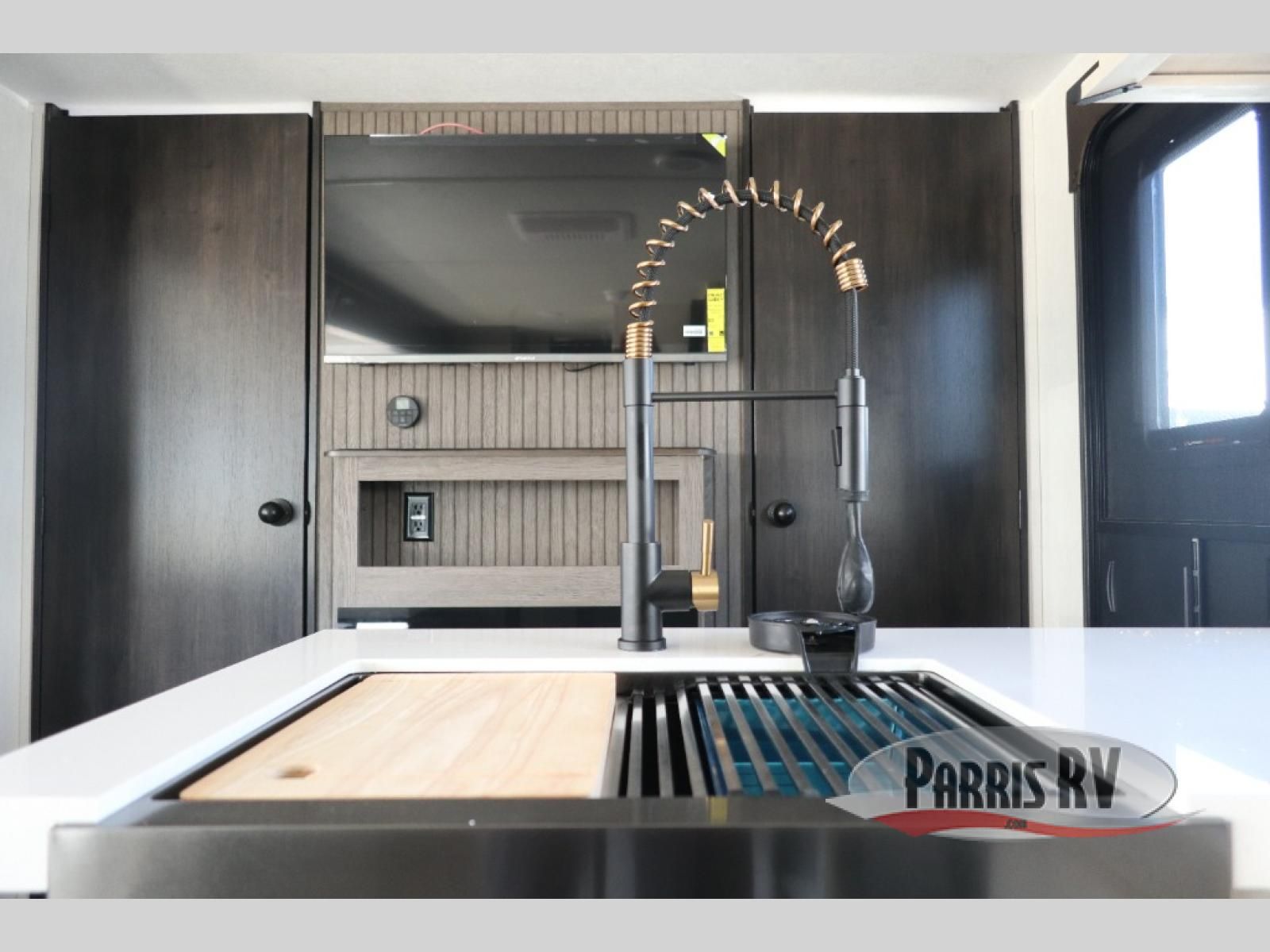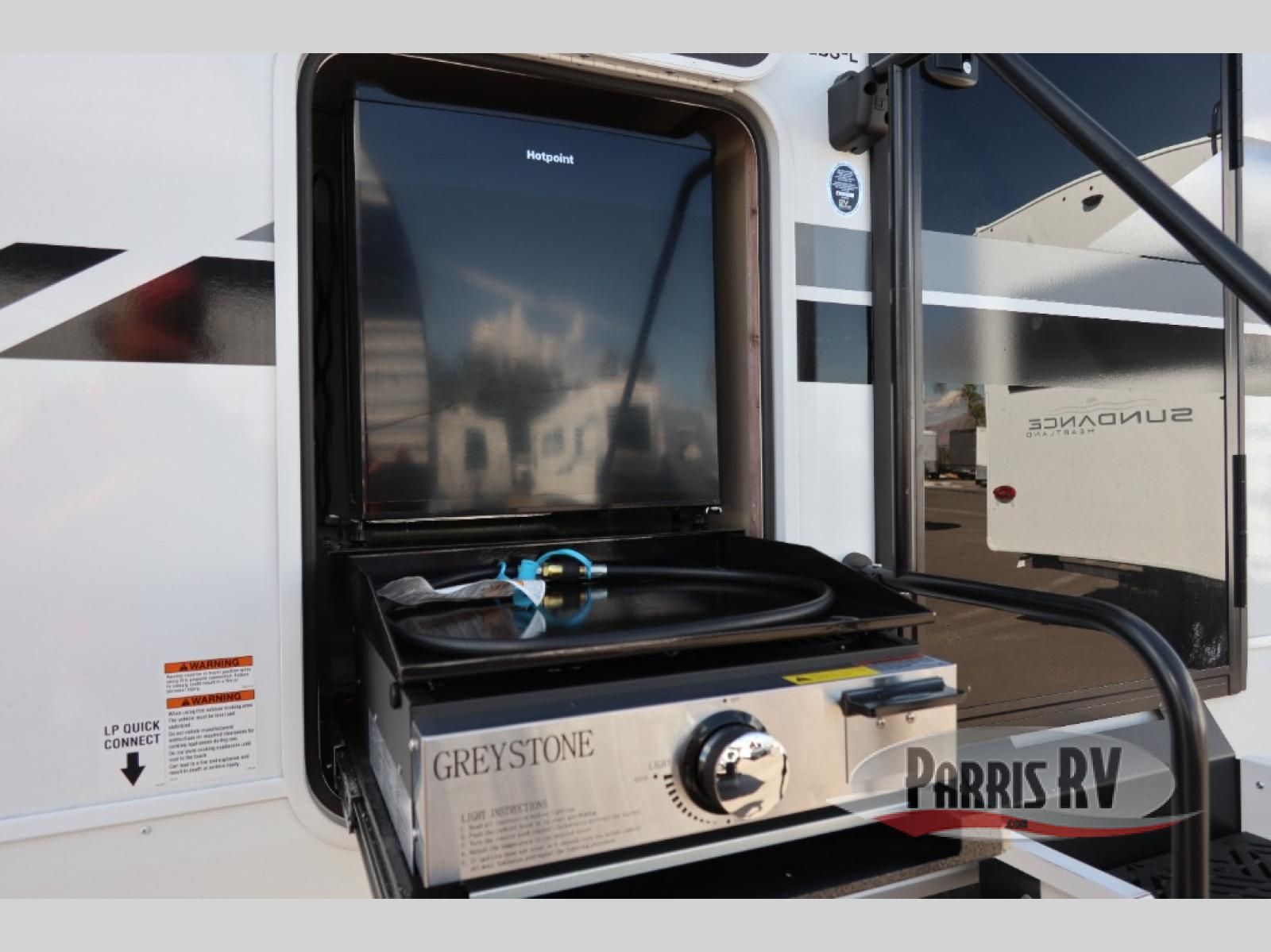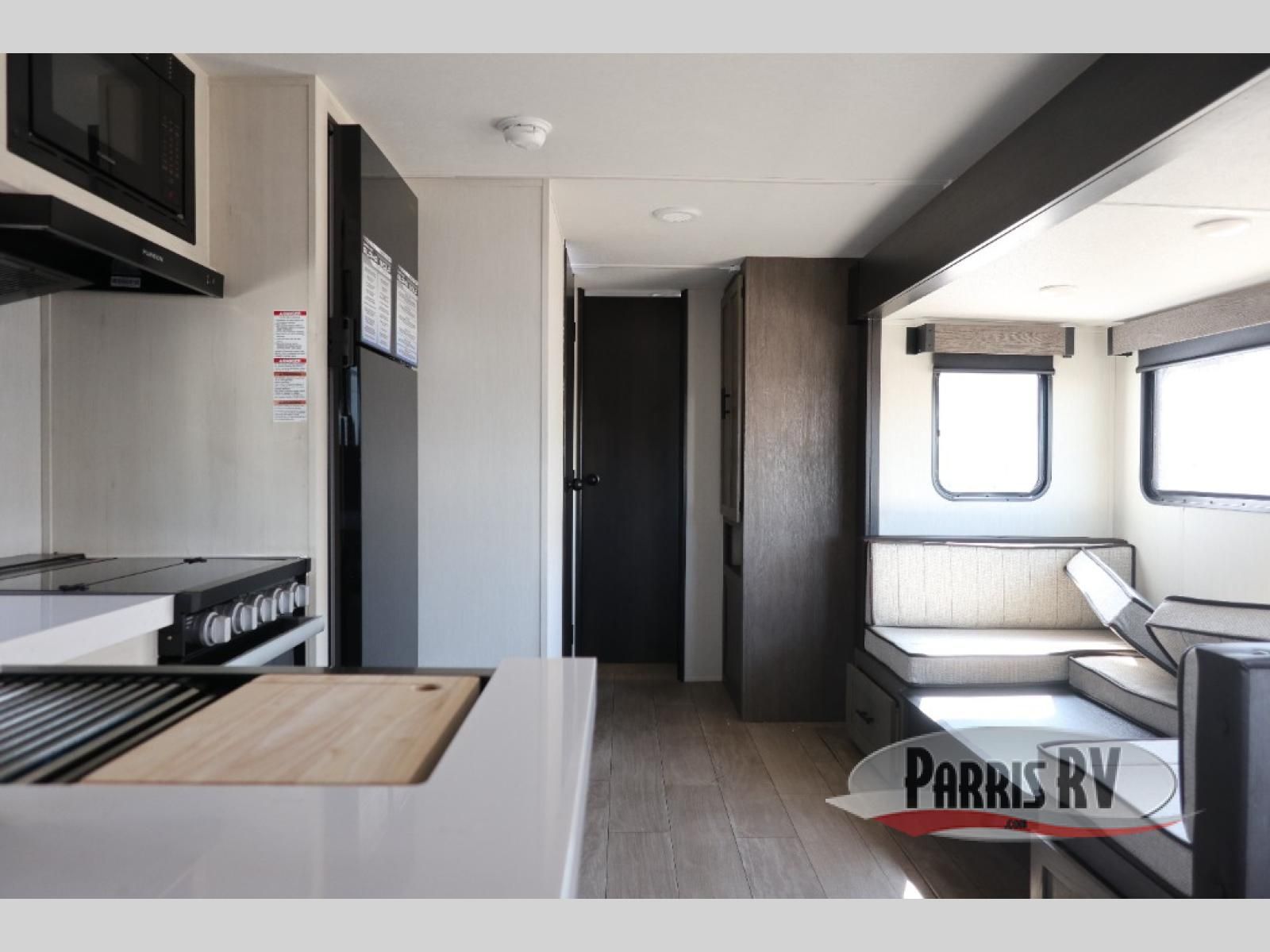 Looking for a spacious travel trailer to sleep nine or ten happy campers? You've found it in this Cherokee Alpha Wolf model with a handy outside kitchen, a bunkhouse with a dinette, a front private bedroom, and a large slide out! The main living and kitchen area has a U-shaped dinette to utilize as a dining table, game table, work station, and/or an extra sleeping space. There is also a jackknife sofa for seating, TV watching, or sleeping. From any seating area you can easily view the entertainment center and fireplace which is centered in the unit with doors on either side to the front private bedroom. You will also find a nice pantry and full kitchen amenities including a large sink, and residential-style refrigerator allowing you to easily create meals for your hungry crew. The exterior provides an 18' awning for an outdoor living area over the outside kitchen, and there is ample exterior storage for all of your camping gear like camp chairs, outside games, rugs, and more.