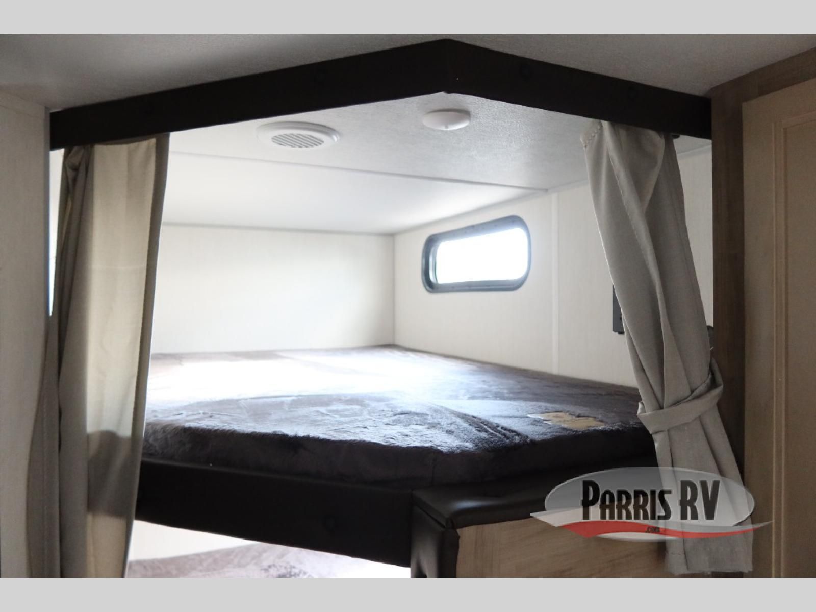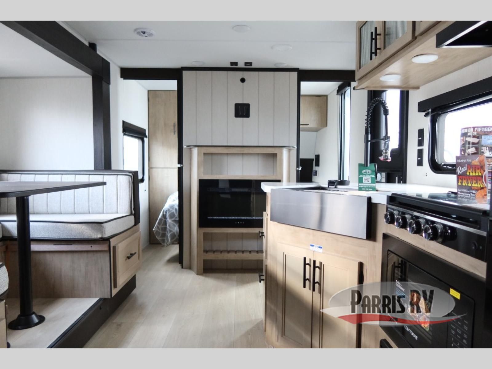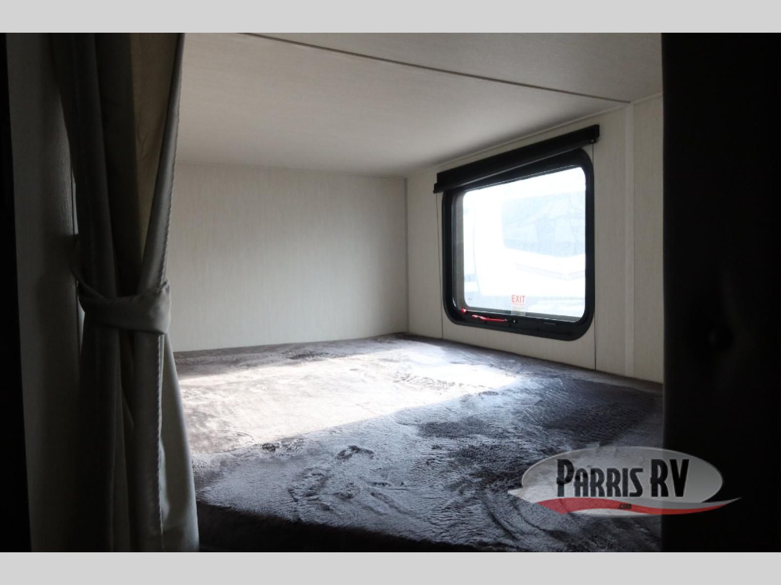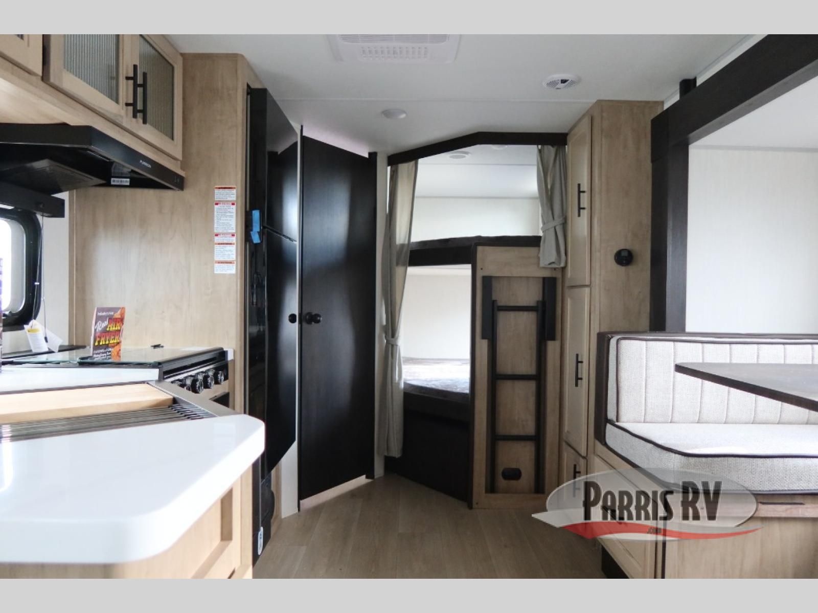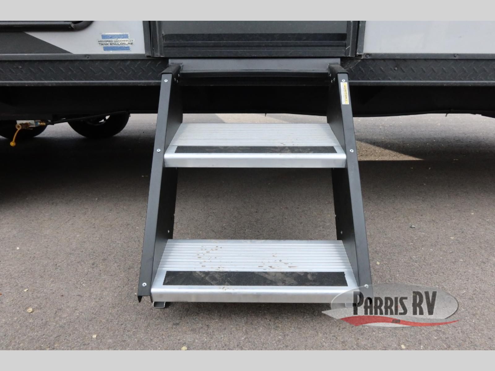 You will love the space provided in this dual entry Cherokee Grey Wolf Black Label travel trailer that has double-size bunks! The rear entry door leads right into the full bath allowing easy access from outside when you need to use the bathroom while you're enjoying the great outdoors. The large U-shaped dinette slide will not only seat everyone comfortably for a meal or a game, but since it also slides out, it opens up the interior even more to give you plenty of space for foot traffic. This space also serves as extra sleeping space if needed. For all of your outdoor gear, you will find the outside storage compartments handy for stowing away your things when not in use. While the kids enjoy their bunk beds, you will enjoy a good night's rest on the RV king bed with a wardrobe in the front private bedroom!
