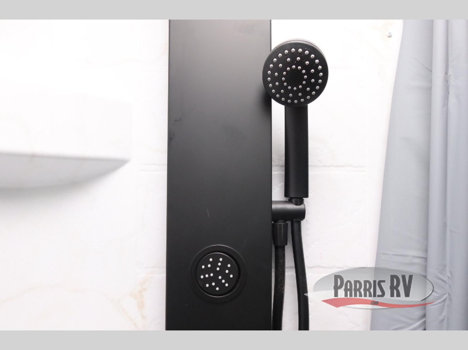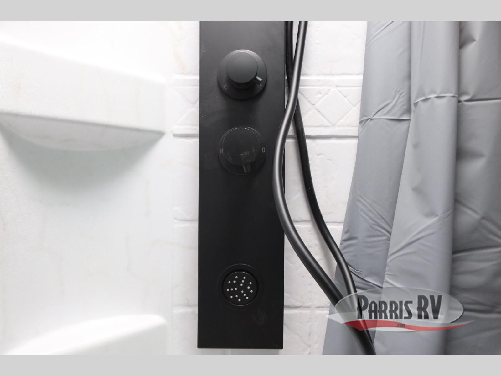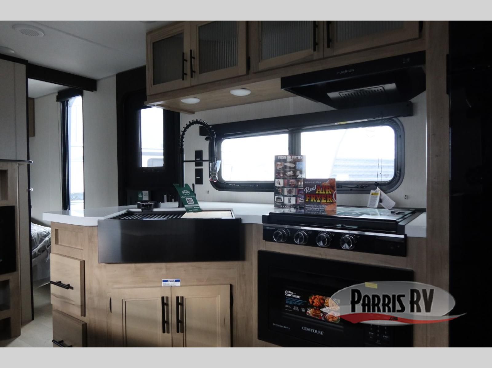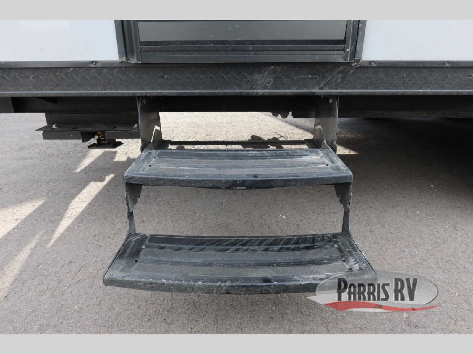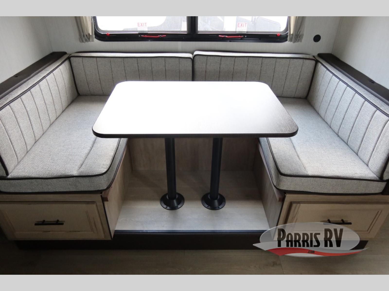 You will love the space provided in this dual entry Cherokee Grey Wolf Black Label travel trailer that has double-size bunks! The rear entry door leads right into the full bath allowing easy access from outside when you need to use the bathroom while you're enjoying the great outdoors. The large U-shaped dinette slide will not only seat everyone comfortably for a meal or a game, but since it also slides out, it opens up the interior even more to give you plenty of space for foot traffic. This space also serves as extra sleeping space if needed. For all of your outdoor gear, you will find the outside storage compartments handy for stowing away your things when not in use. While the kids enjoy their bunk beds, you will enjoy a good night's rest on the RV king bed with a wardrobe in the front private bedroom!