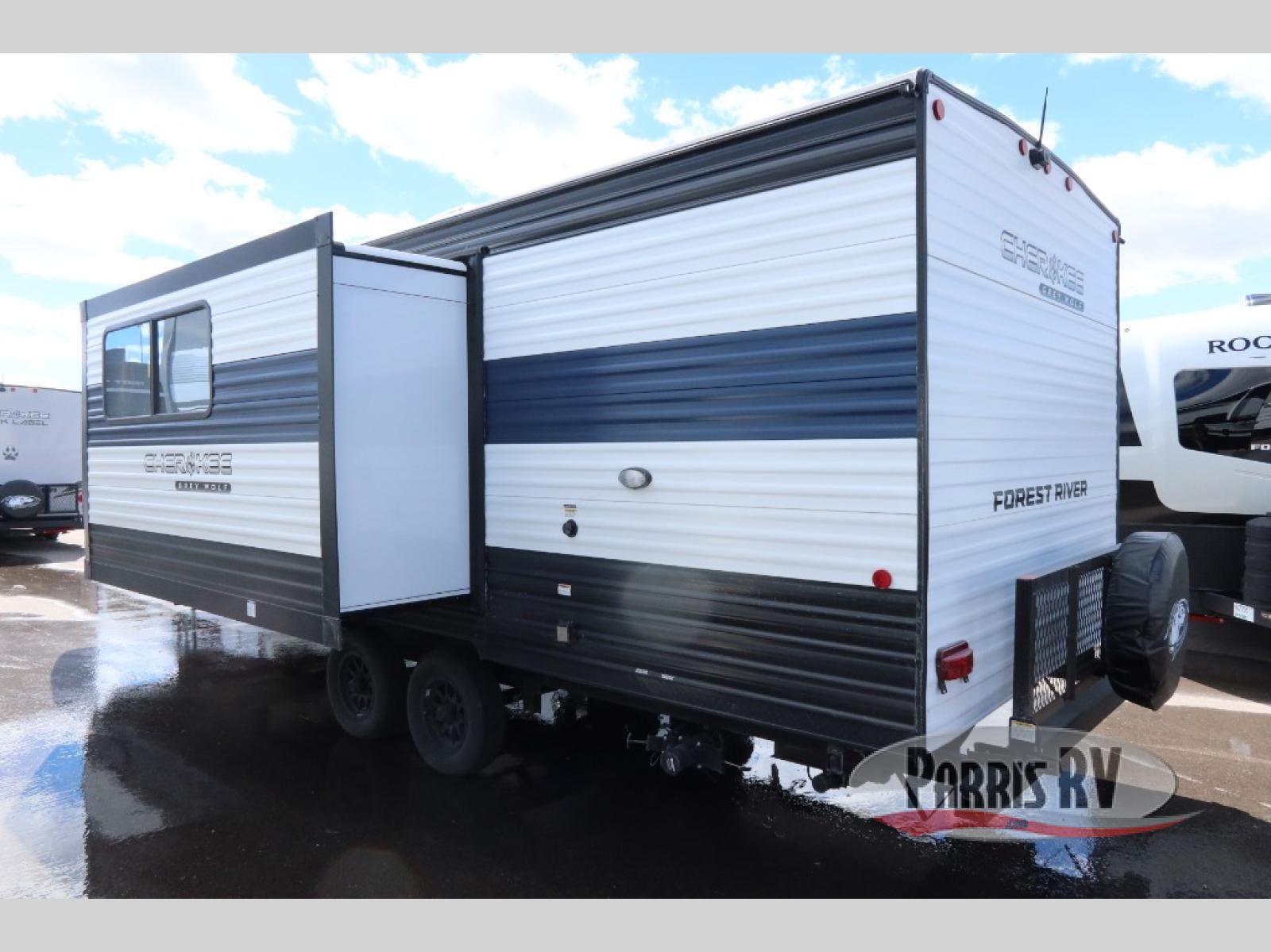 The Cherokee Grey Wolf by Forest River feature distinctive features, at-home comforts, and durable construction materials so you can enjoy your RV for years to come, plus they are outstandingly affordable! You can choose between travel trailers, toy haulers, and even fish houses, depending on the camping style you prefer. You'll find many convenient amenities both inside and outside, along with comfortable seating and sleeping spaces, and plenty of storage for your personal belongings and camp gear!
