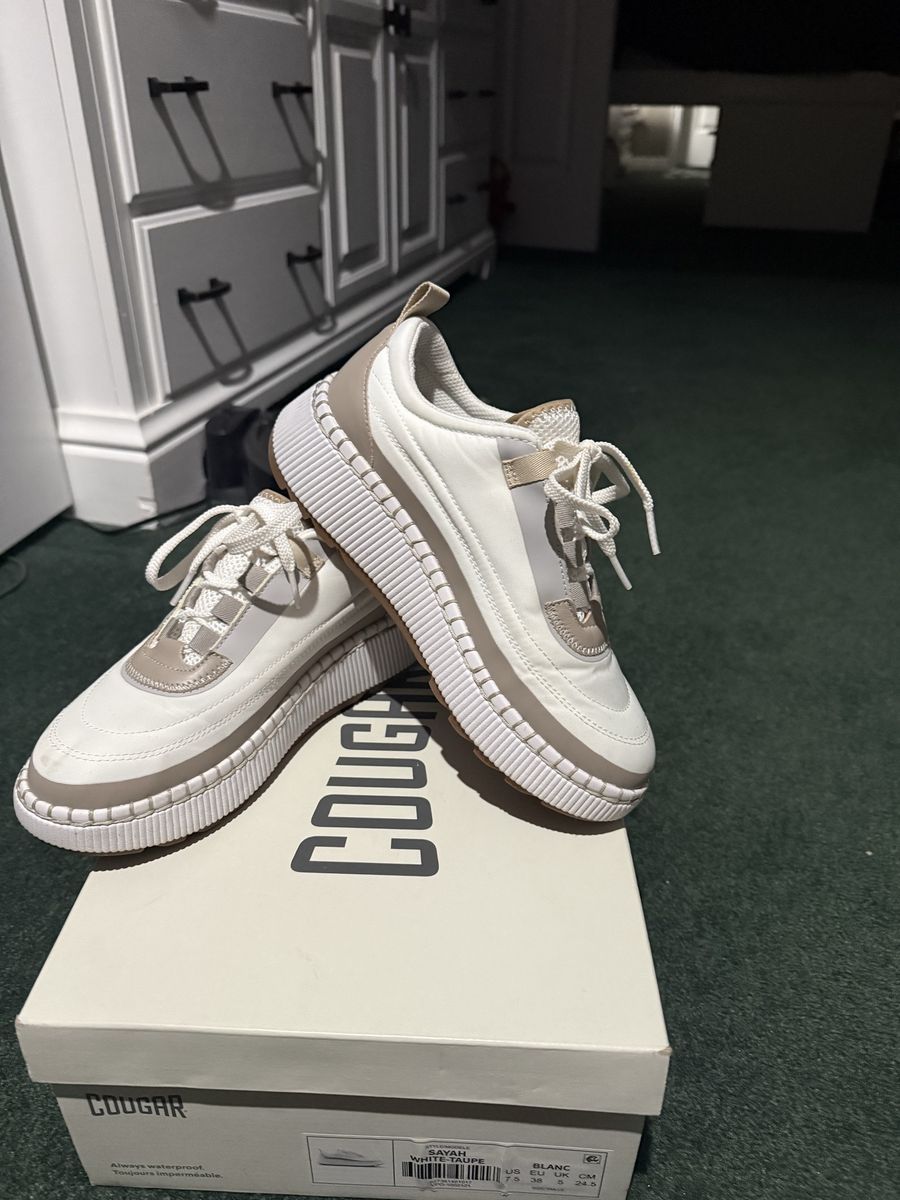 VenmoSize 7.5 like new didn’t fit good for walking and working great insole. Color is Sarah white-taupe. Canvas waterproof like texture.