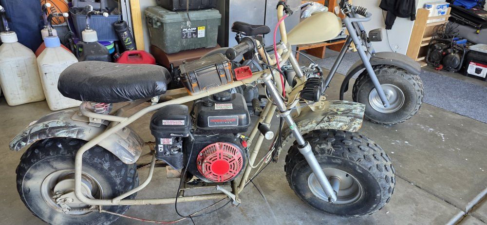 $600 for both of them together Camo one is built and running but gonna toss a new motor in to sell so it will be new the other chopper I was building but haven't got the time parts are stupid cheap on Amazon I can send a list which is around 200 to get it badass so just let me know no trades not gonna answer spam or trade for insta 360 x5