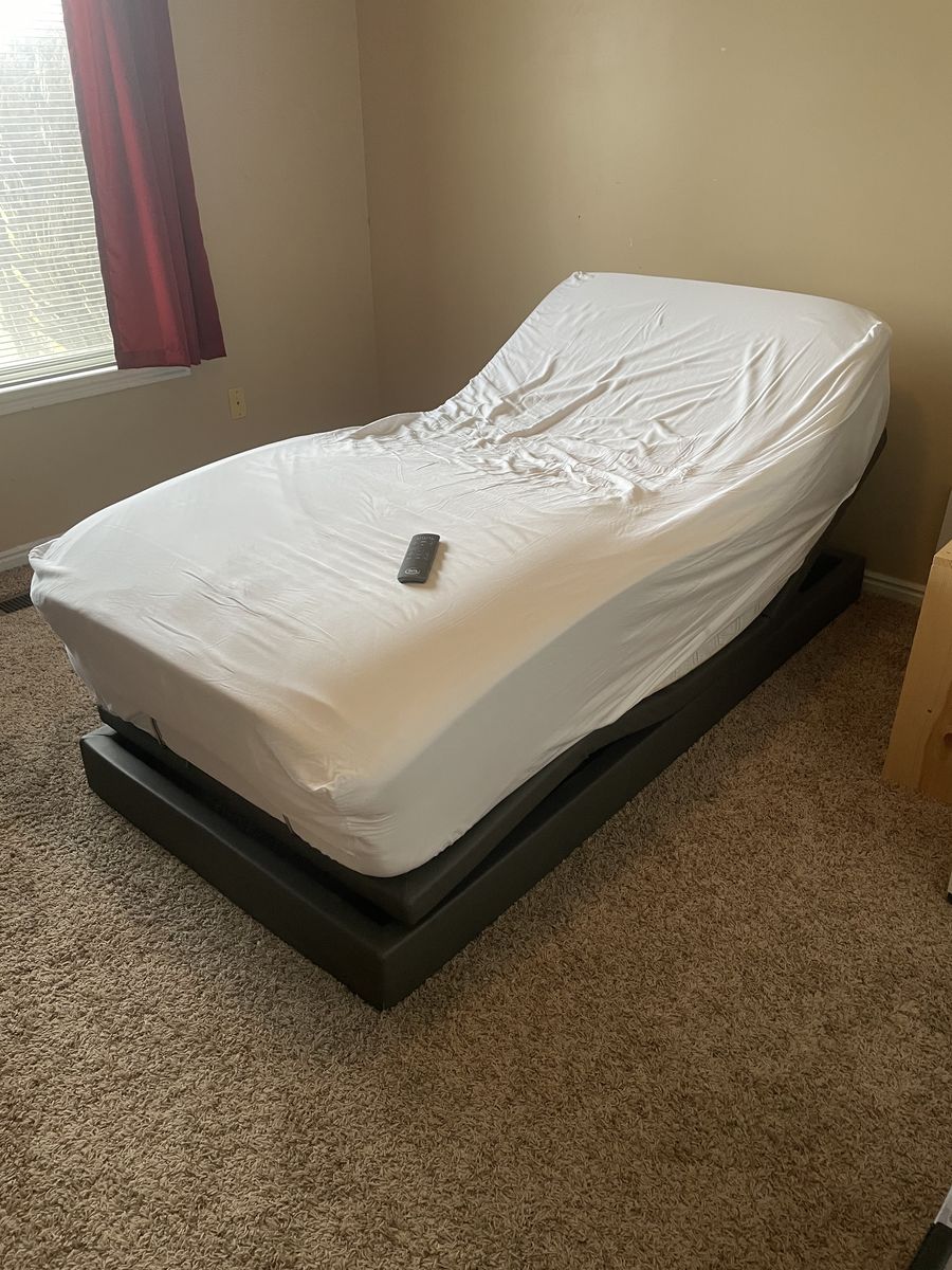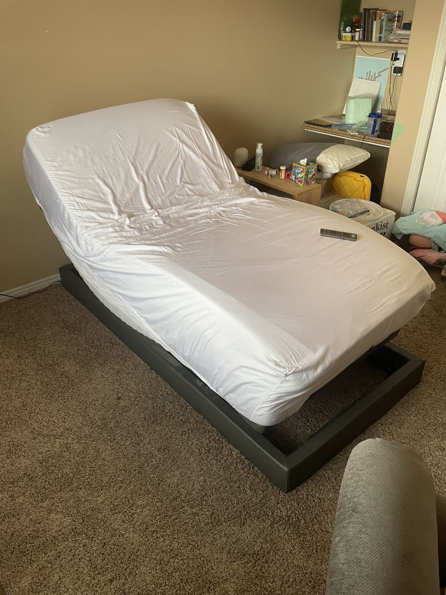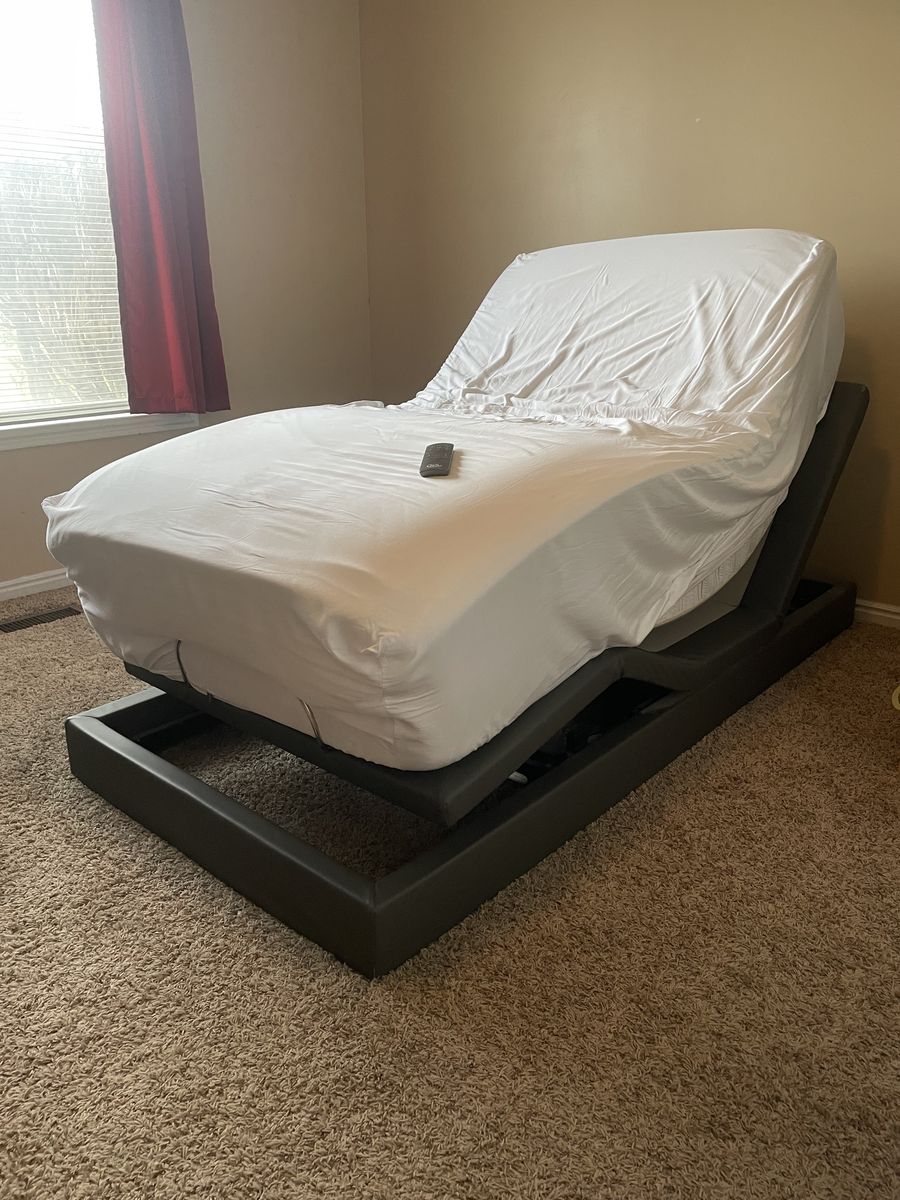 ApplePayCompletely Adjustable bed Frame with iComfort Twin XL Mattress.