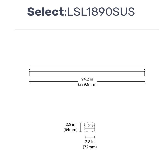 Specifications Semi-circular, milky-white diffuser Lens module retention method securely holds it in ceiling, wall, or pendant mount Selectable CCT of 3500K/4000K/5000K Standard 80 CRI, 90 CRI option available on 4’ model Input voltage of 120-277VAC Selectable Wattage of: 2’ (25/20/15W), 4’ (45/38/34W), 8’ (90/75/65W) Power factor > 0.9, THD < 20% Through wiring capable for end-to-end runs Operating temperature rating of -4°F to 122°F (-20°C to 50°C) Available Options: LSL Microwave Sensor 12V Snap-in (SNAPINSENSORMW) Remote Controller for SNAPINSENSORMW (SNAPINMWREMOTE)
