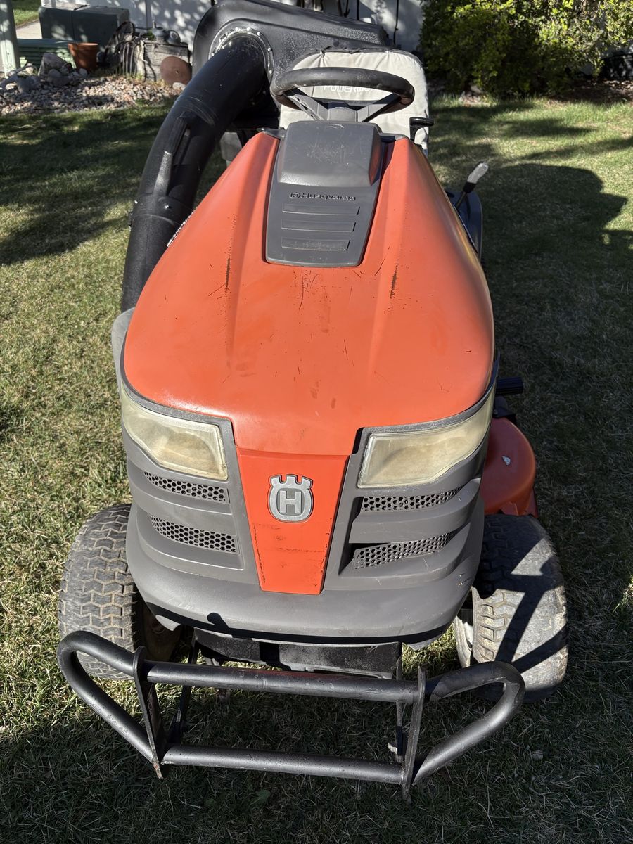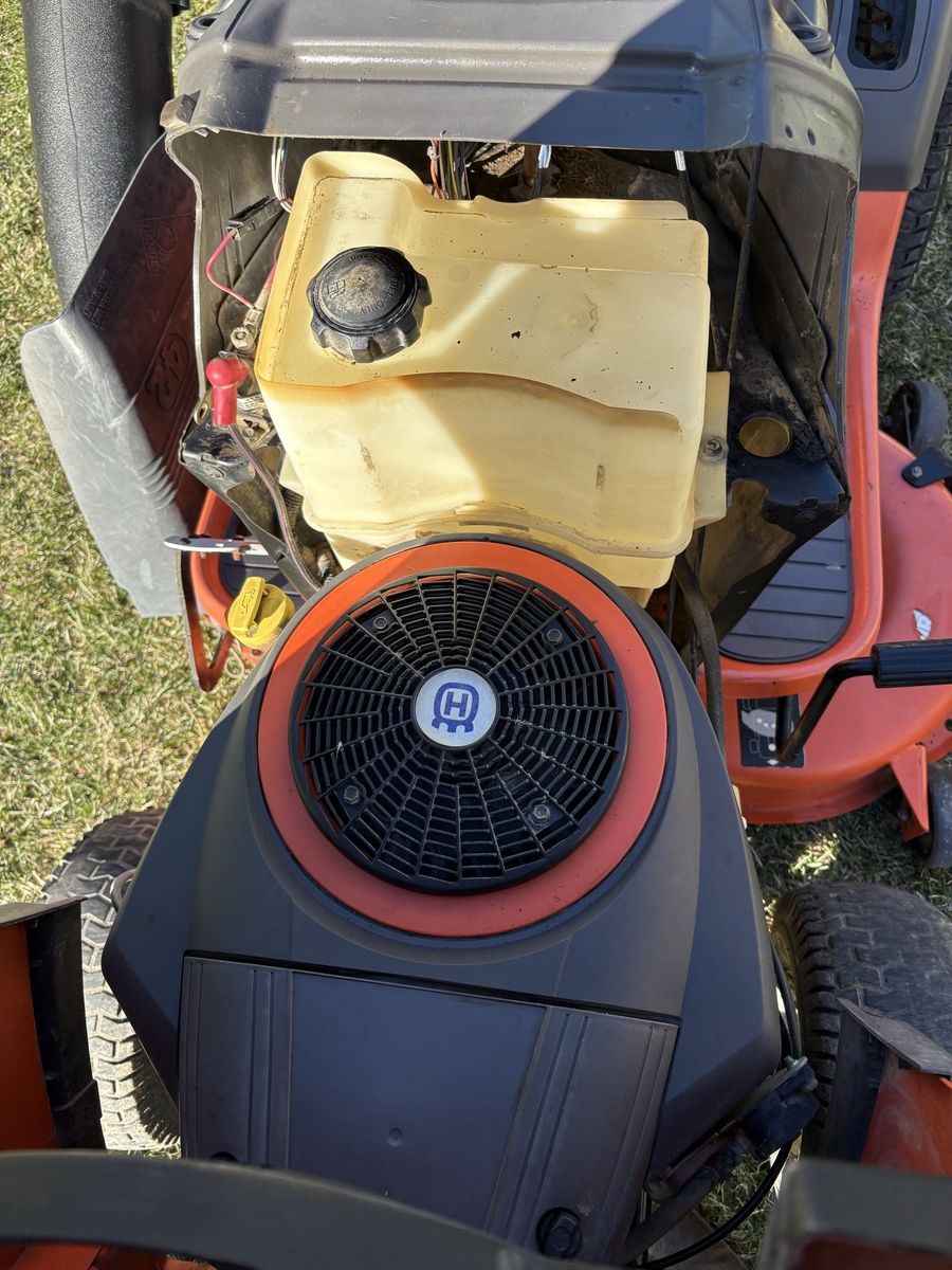 42 inch deck with bagging system Comes with hard buckets Has good battery Foot pedal drive 20 hp twin Briggs and Stratton Everything works. Gets the job done