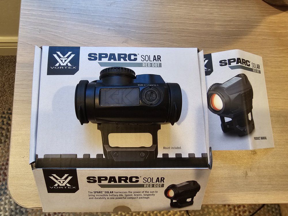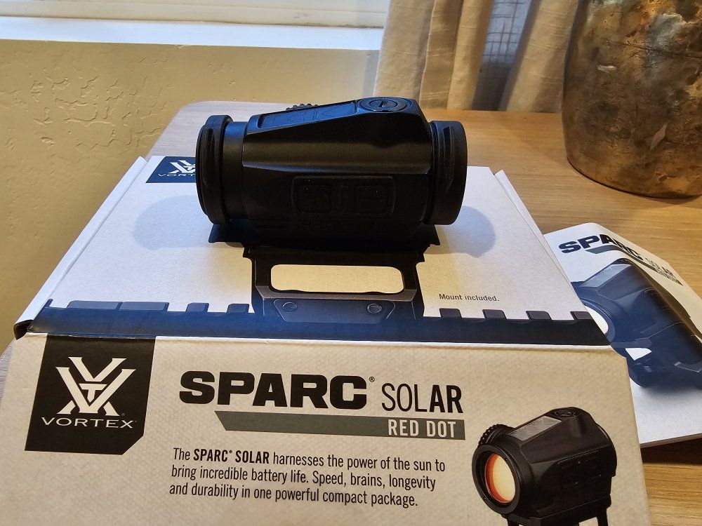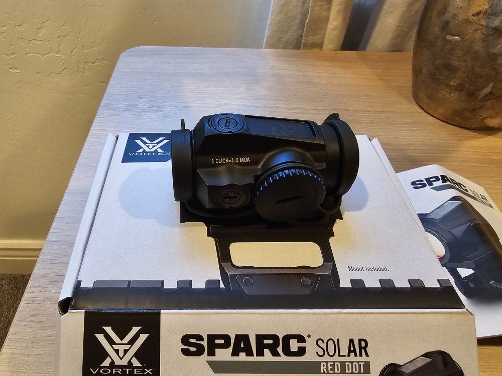 Vortex Solar Sparc. purchased new 2 months ago. It is in pristine like new condition. Comes with everything from the factory. I mounted it on an AR and sighted it in. Then got a good deal on an LPVO and swapped it out. Its a great red dot that gives you peace of mind with the Solar panel. I've had one on my muzzleloader for a couple years and love it. I'd keep it but don't have anything to put it on. Price is firm