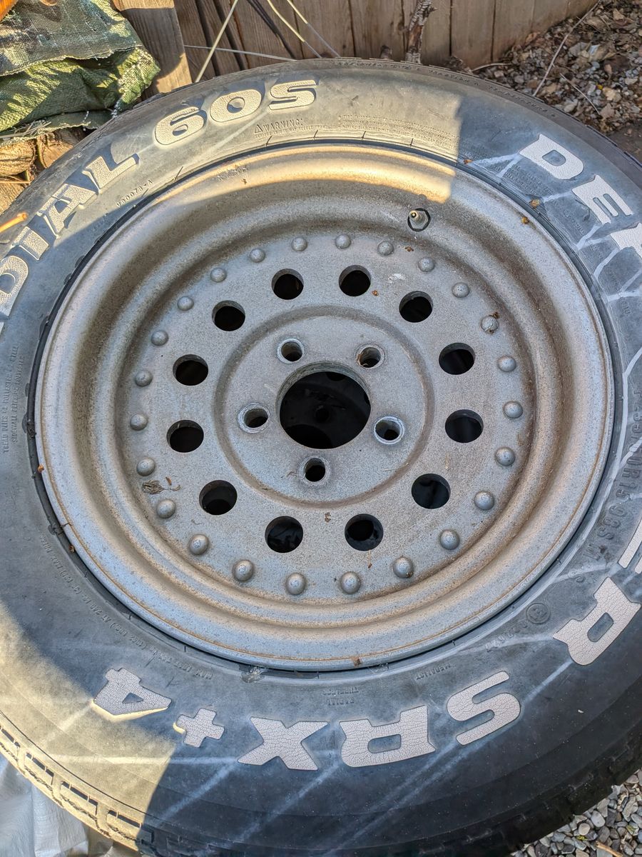 PayPal4 15" Centerline wheels and tires. Chevy bolt pattern. Should clean up nicely. Do not have the lug nuts. Removed from a 1984 El Camino. Tires are 235/60x15. Located in Tooele.