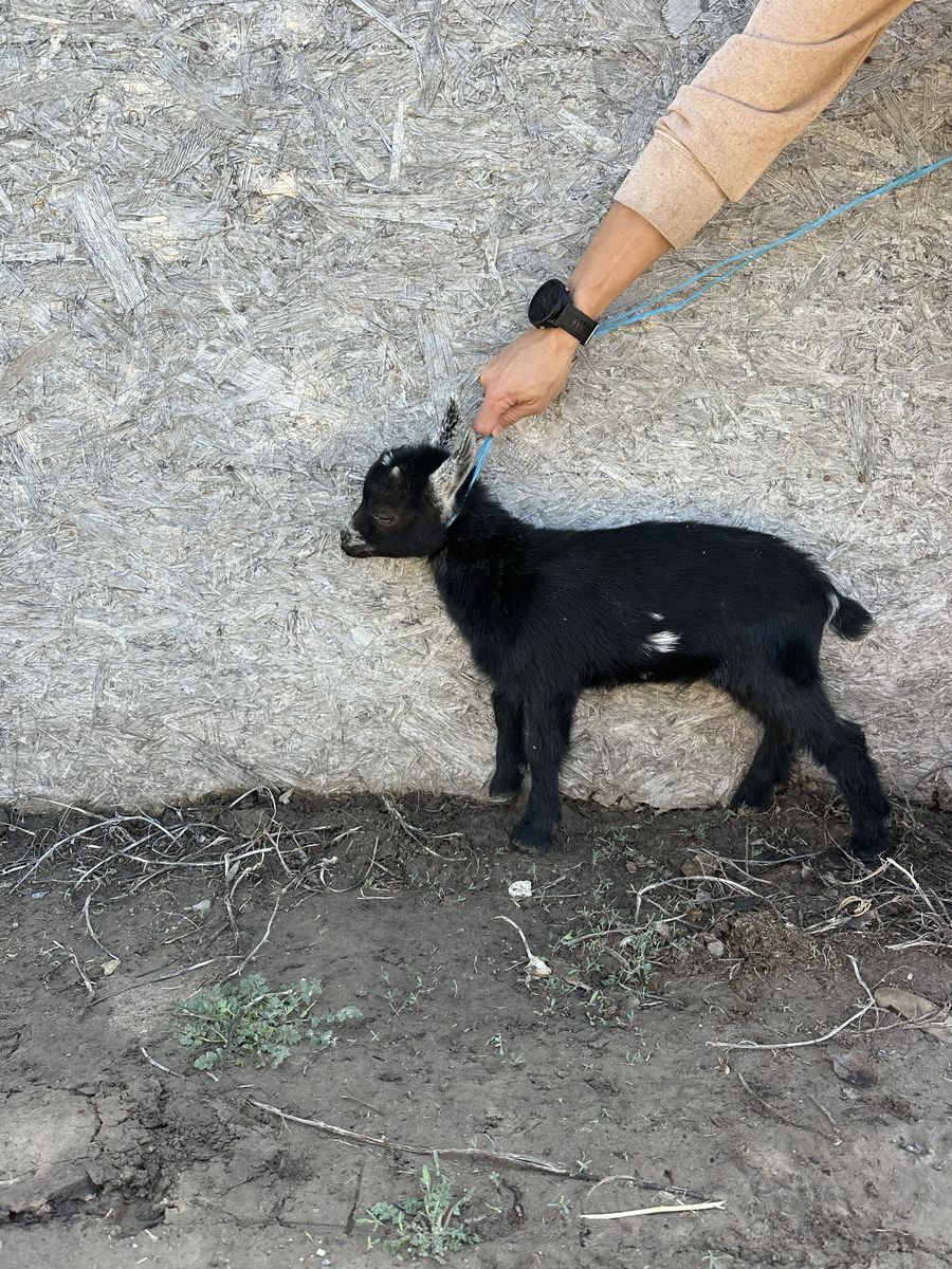 SOLD All black mini Nubian (85% Nigerian boy shows body length of a mini Nubian And more of a Roman nose. He is the SWEETEST boy. Like a puppy dog. Asking $100 for him because he's such a sweet boy)