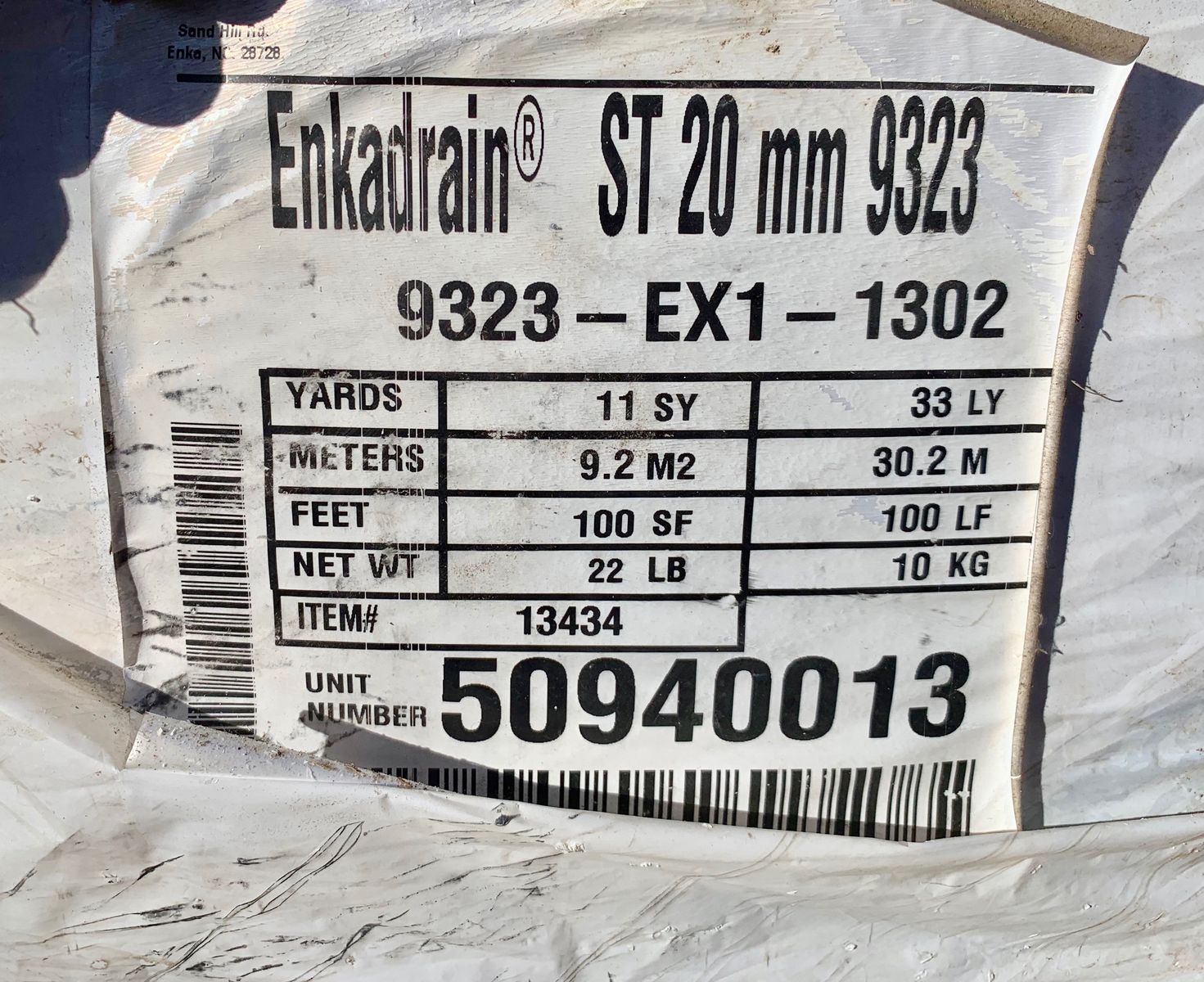 I have 10 rolls of EnkaDrain construction composite drainage mats available for $295 FOR ALL. You are getting over $4000 worth of this material for only $295. This retails for $500 per roll, new. Each roll is 12 inches wide and 20 millimeters thick. Each roll covers 100 square feet (9.2 meters squared or 11 square yards).