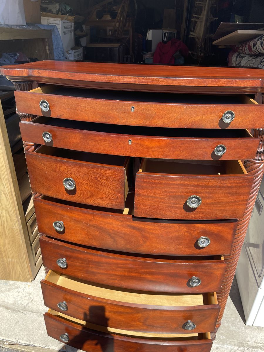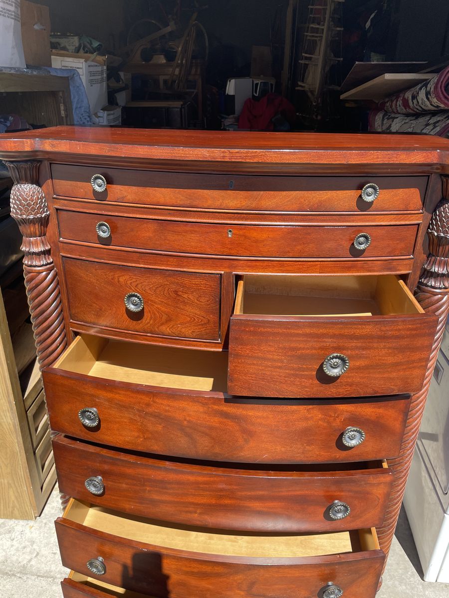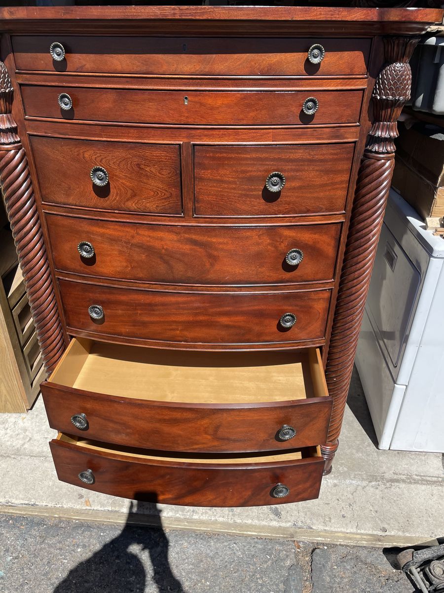 Used like new well made solid TALL BOY DRESSER 8 drawers dimensions are 41”1/2 Length 59” height 18” depth asking $340.00 cash and pickup at Sandy thanks