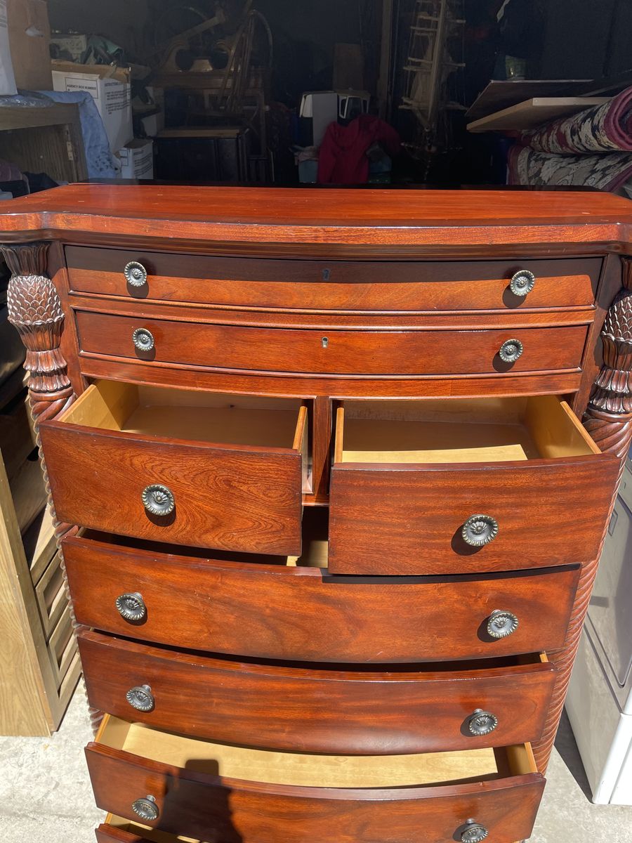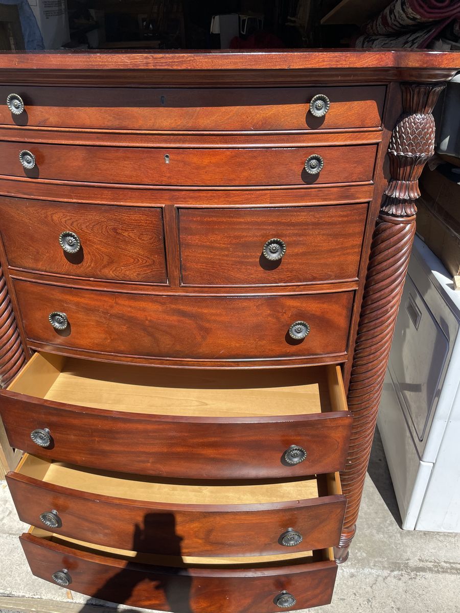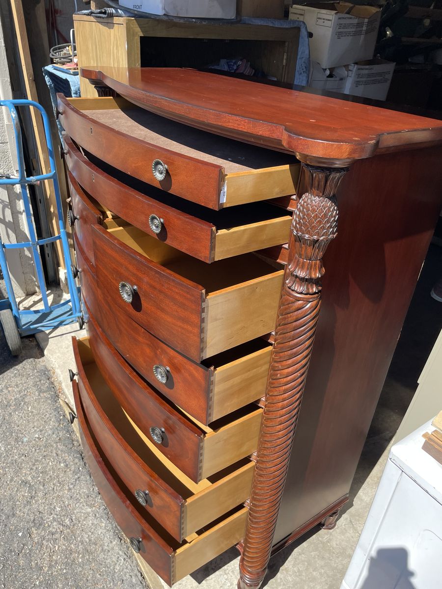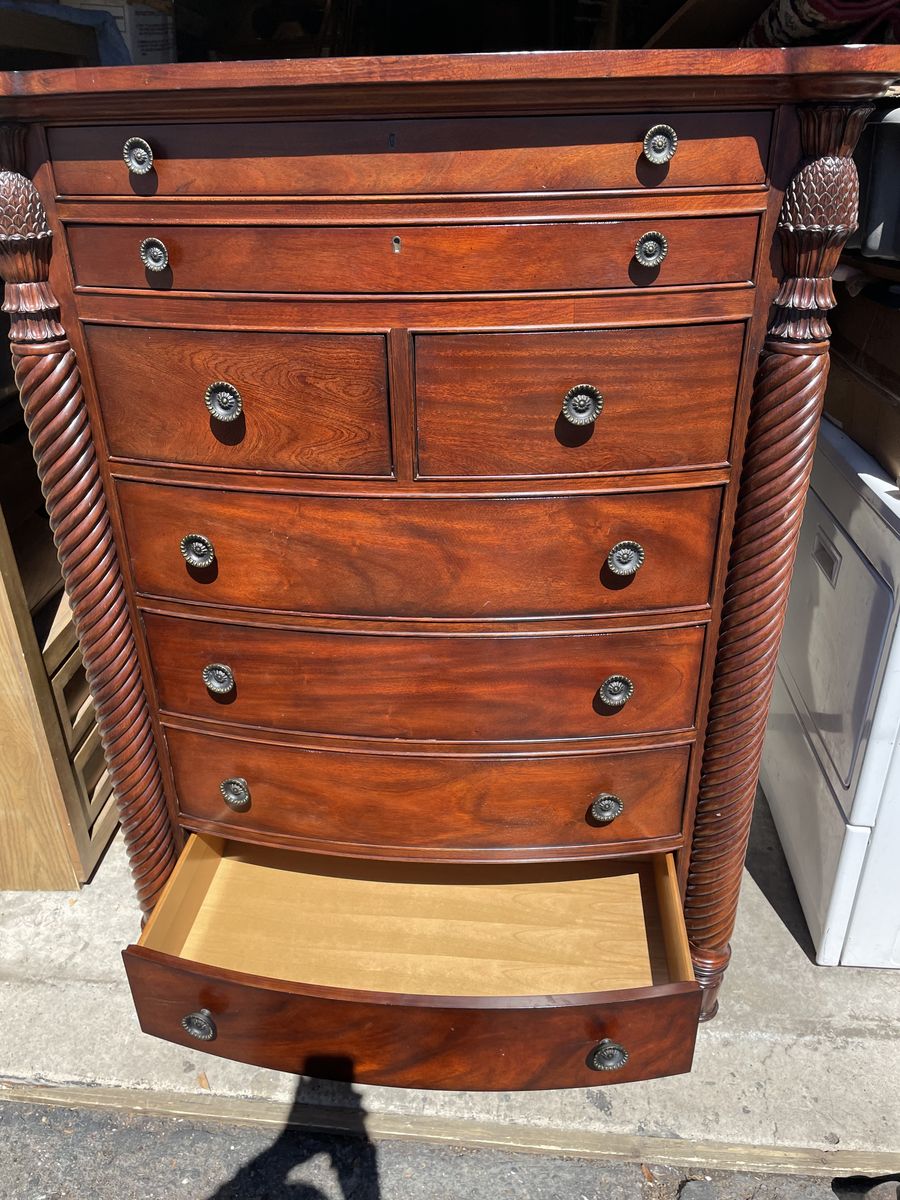 Used like new well made solid TALL BOY DRESSER 8 drawers dimensions are 41”1/2 Length 59” height 18” depth asking $340.00 cash and pickup at Sandy thanks