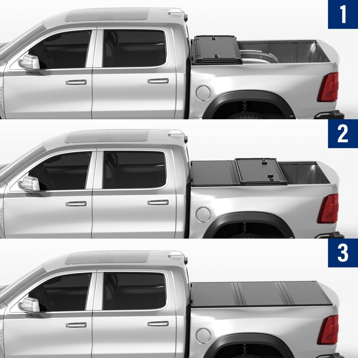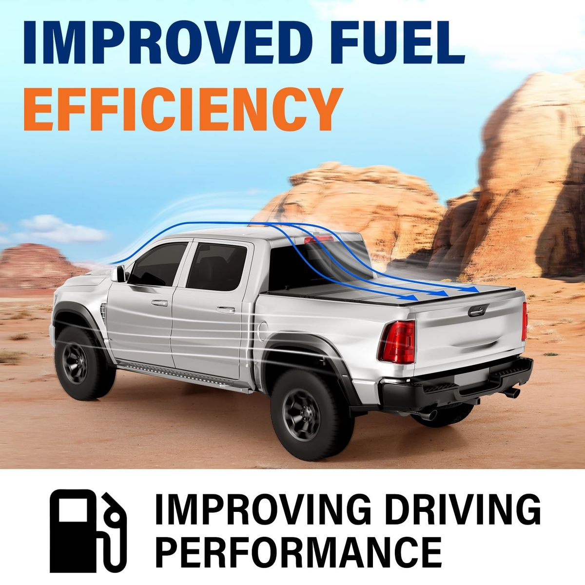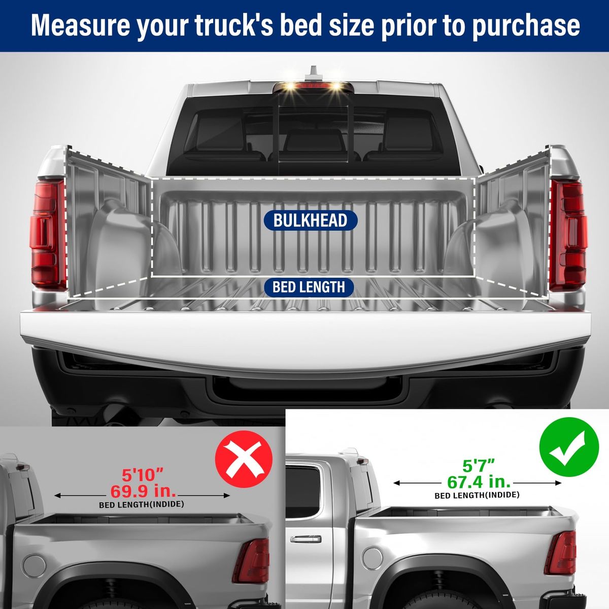 VenmoCompatibility: Compatible with 2009-2026 Dodge Ram 1500 & 2500 5' 7" Bed Without Ram Box (67.4"). Custom-fit solution to increase truck bed utility. All-around Strength - The hard fold is made of Professional FRP and aluminum panels and internal honeycomb structure support, rated to hold up to 400 lbs, provides added security for your cargo, helping to prevent theft and damage. Protection from severe weather - The truck bed cover Features tear resistant, water resistance, high temperature resistance, safeguards against rain, snow, and potential damage from sharp objects, ensuring the safety and security of your cargo. Enjoy reliable durability without fading, cracking, or peeling. No-drill Installation: Install the hard tri-fold tonneau cover in no time without any drilling or modifications needed. When you need to access your cargo, simply fold the cover back and your items are easily accessible. Note that if your truck has cargo racks, remove them before installing this cover. Enhanced Fuel Efficiency: Sleek and aerodynamic design resulting in improved gas mileage, remains stable even at highway speeds, the bed truck cover can help improve your truck's fuel efficiency by reducing wind drag.