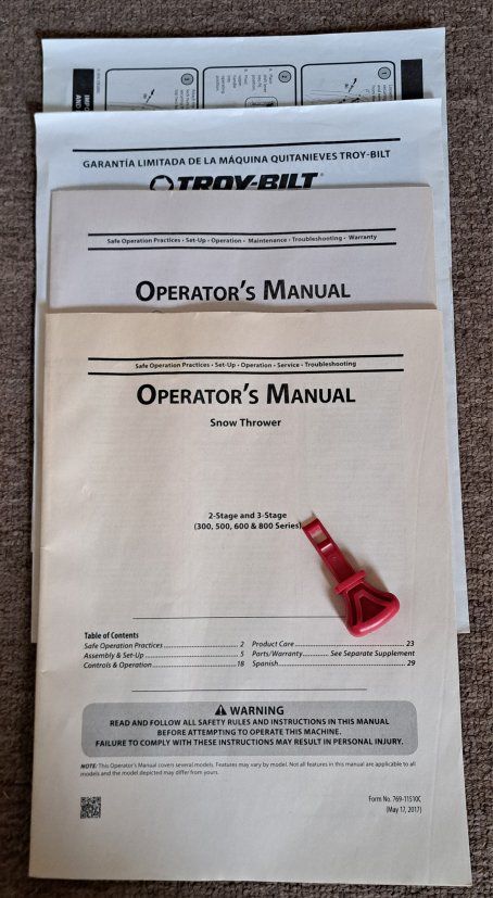 Troy-bilt 2410 in great shape. Has been run since new on ethanol free gas and drained at the end of each winter. Well maintained. Also has Electric start option. Cash only.