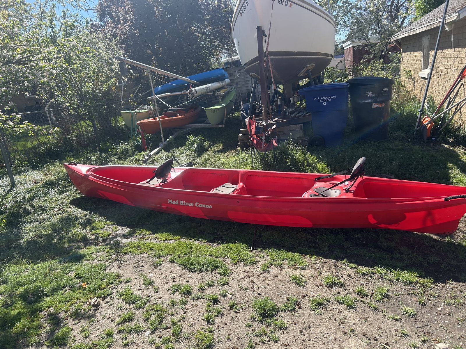 PayPalThis is an 80 lb three man canoe. not really for three people but does have a middle bench. Comes with two orange life preservers and one oar. I lost the other oar on the Weber river.