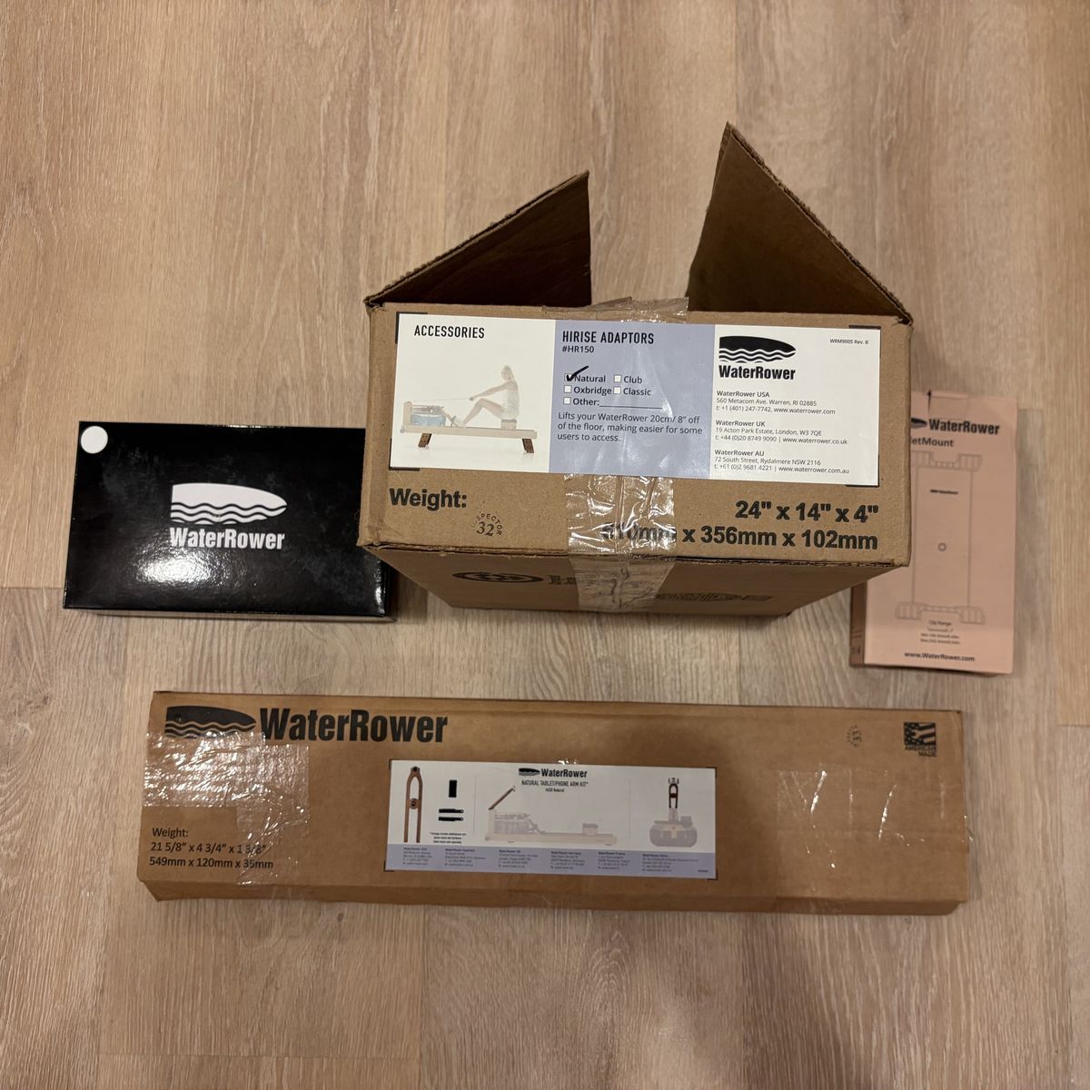 Waterrower $1199 High rise $150 Tablet/phone holder: $100 Bluetooth Module: $100