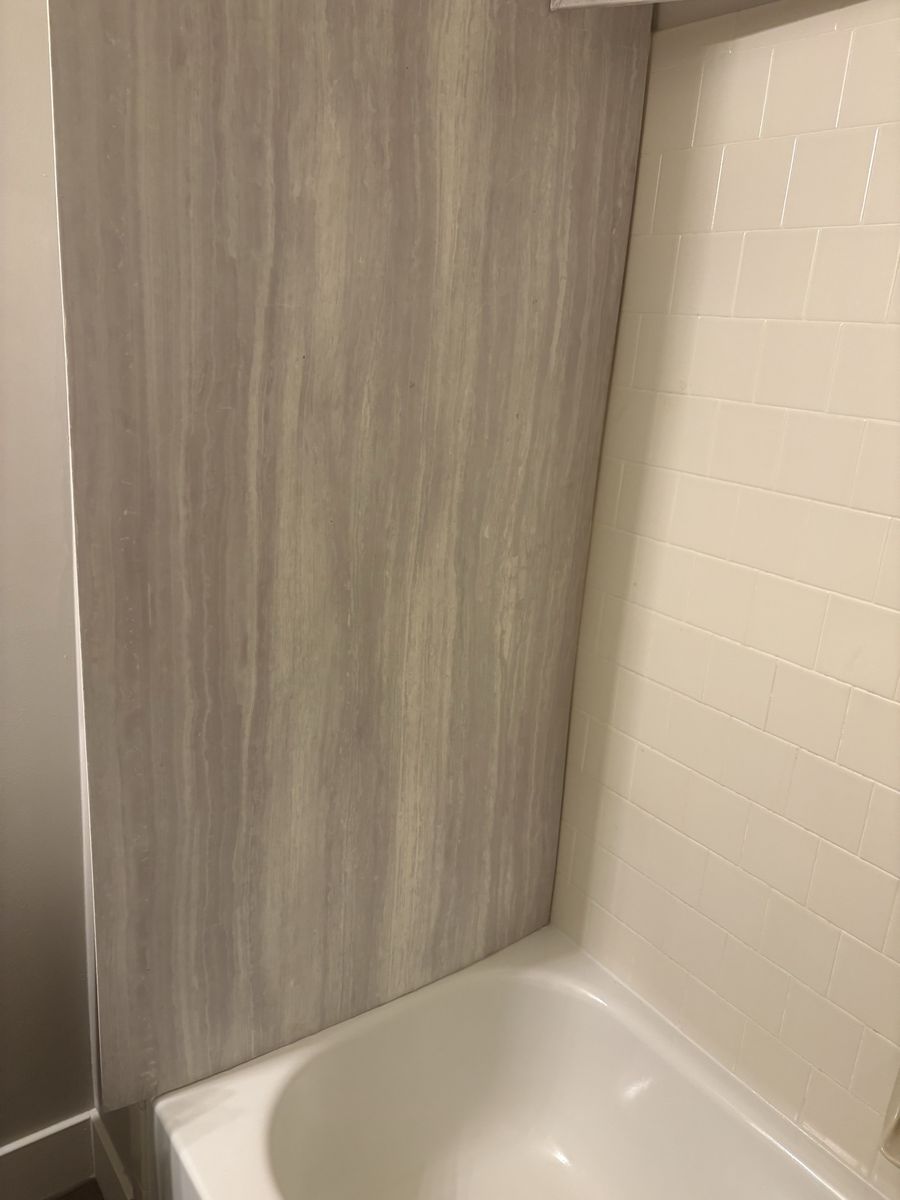 VenmoIt goes right over the tile in your existing tub and shower surround you literally just blew it on and put the trim on and cut out for the faucet. This is a super easy great product for an update. We decided to go with a three-quarter bath so we don’t need this anymore. Make an offer.