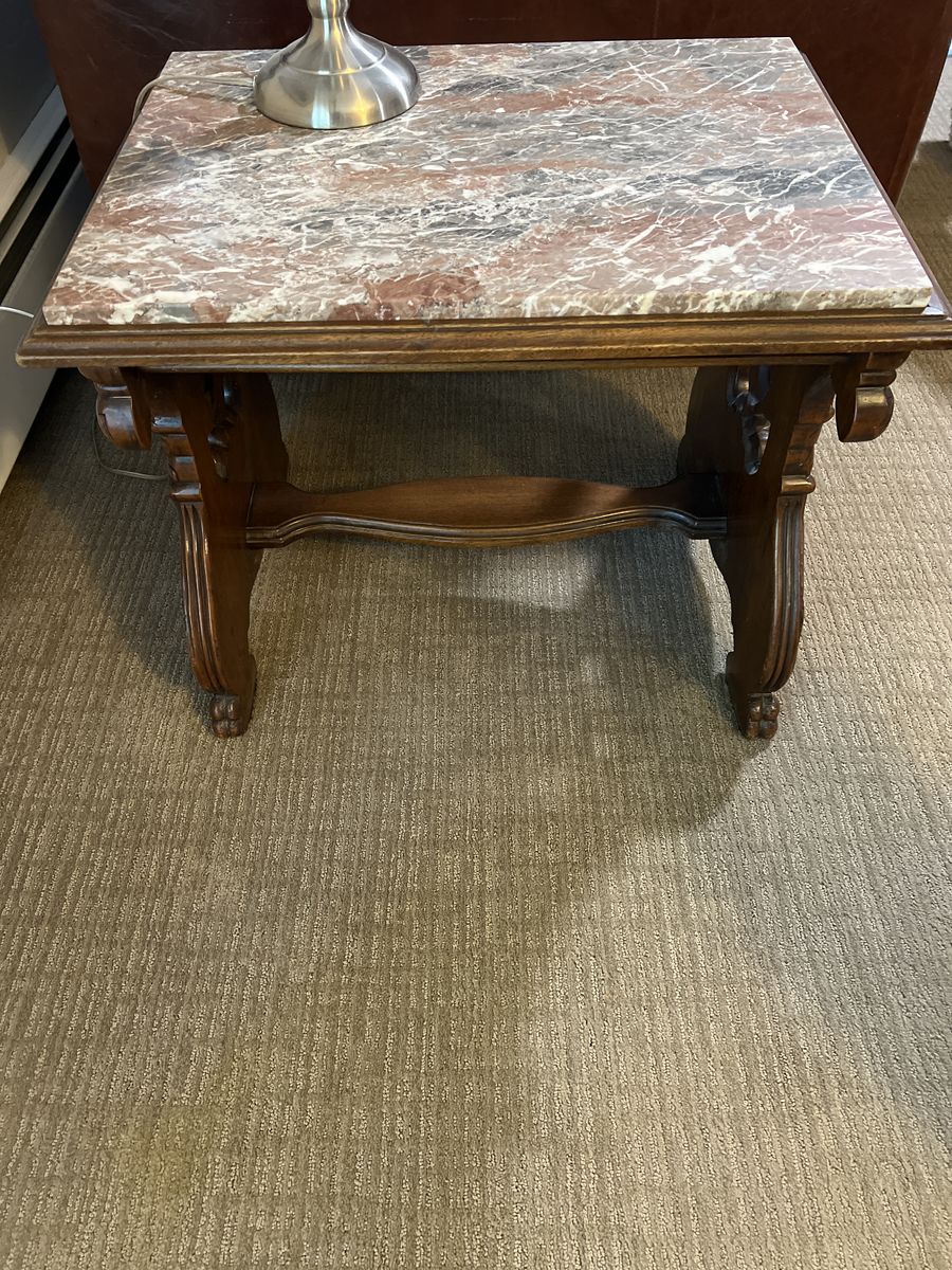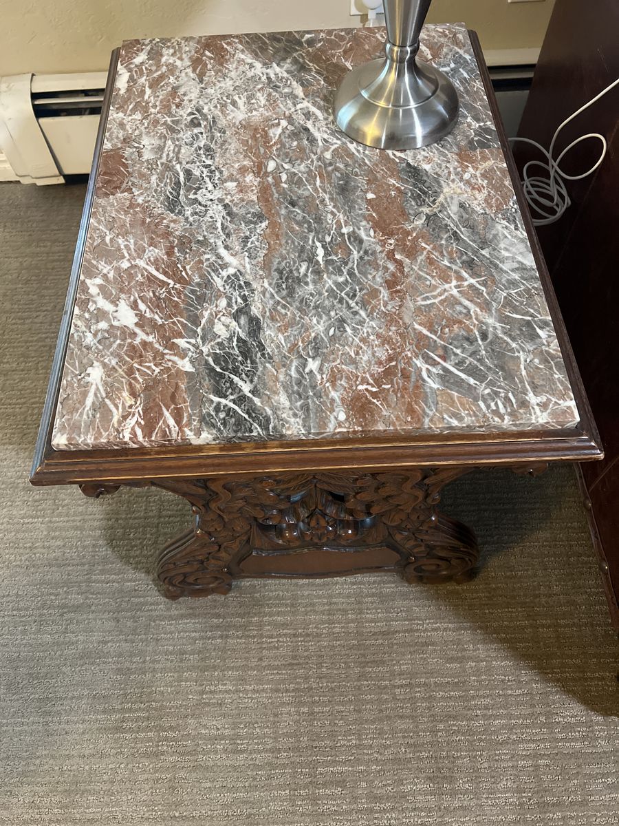 Carved griffon table with marble top ?