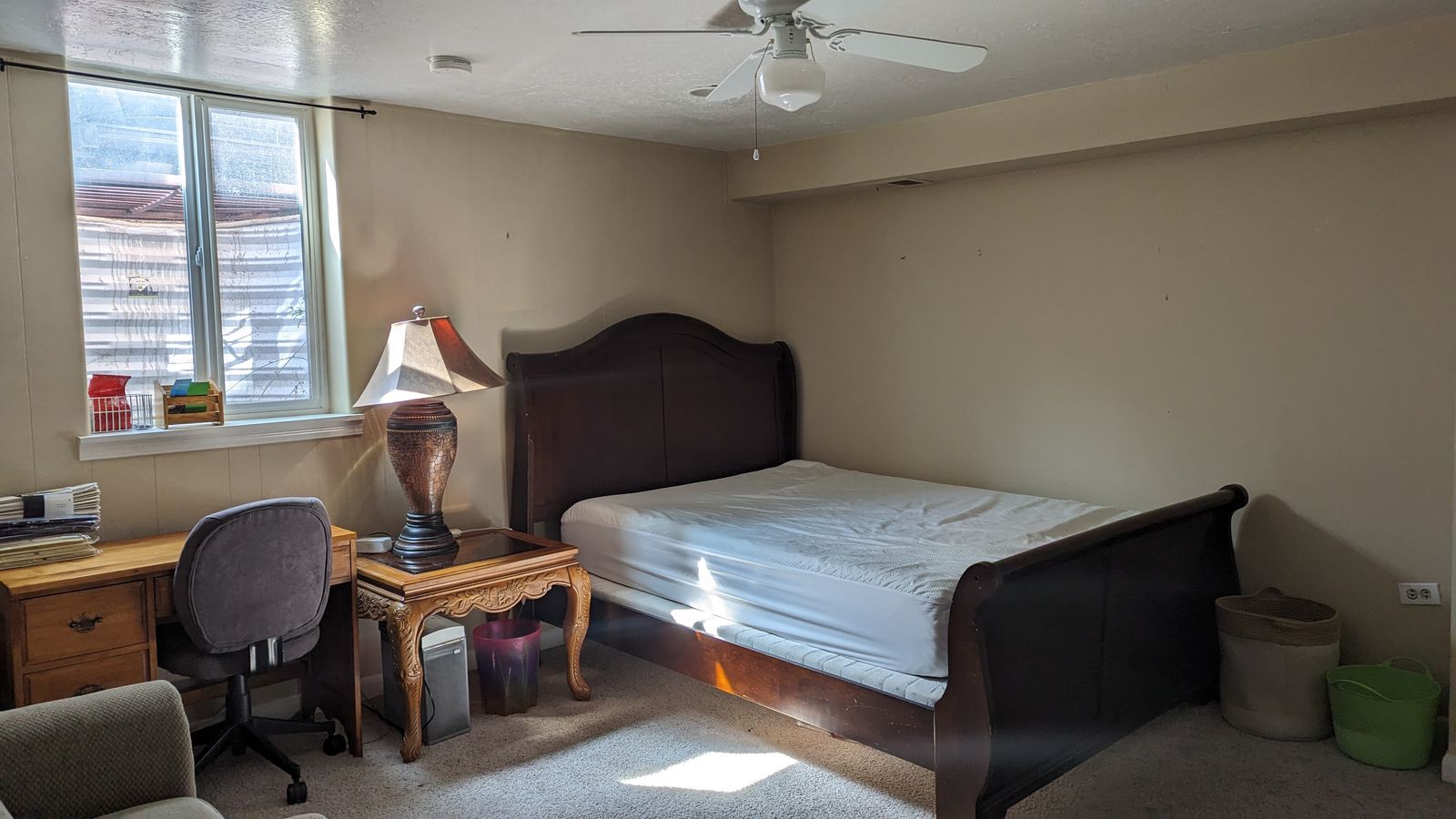 A large, well lit bedroom is available in a spacious, quiet 2900 sqft, 5 BR, 2½ bath, Millcreek home located one minute from Millcreek REI. Views of mountains, attached one car garage [used for storage], great backyard with patio and grill, W/D, D/W, central heating, whole house fan, two living rooms, dining room, ample storage, fenced yard, vegetable garden, fruit trees, berry patches. Hardwood floors upstairs, carpeted downstairs. Off and on street parking. One minute away from the entrance to Millcreek Canyon; 10 minutes to the University of Utah.