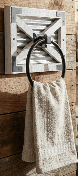 VenmoQTY (2) Autumn Alley Farmhouse White Hand Towel Holder Ring with Bracket - Rustic Hand Towel Holder - Towel Rings for Bathroom Wall Mounted Decor Mix of Wood, Galvanized Metal & Black Rings, White