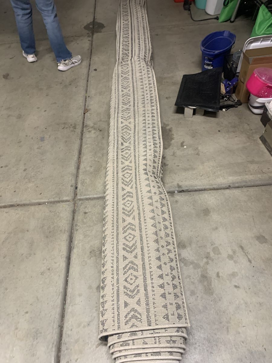 • Size: 12 ft x 12 ft • Color: Black & White • Style: Southwestern / Boho • Condition: Good overall – does need a cleaning and has a small worn spot (see photos)