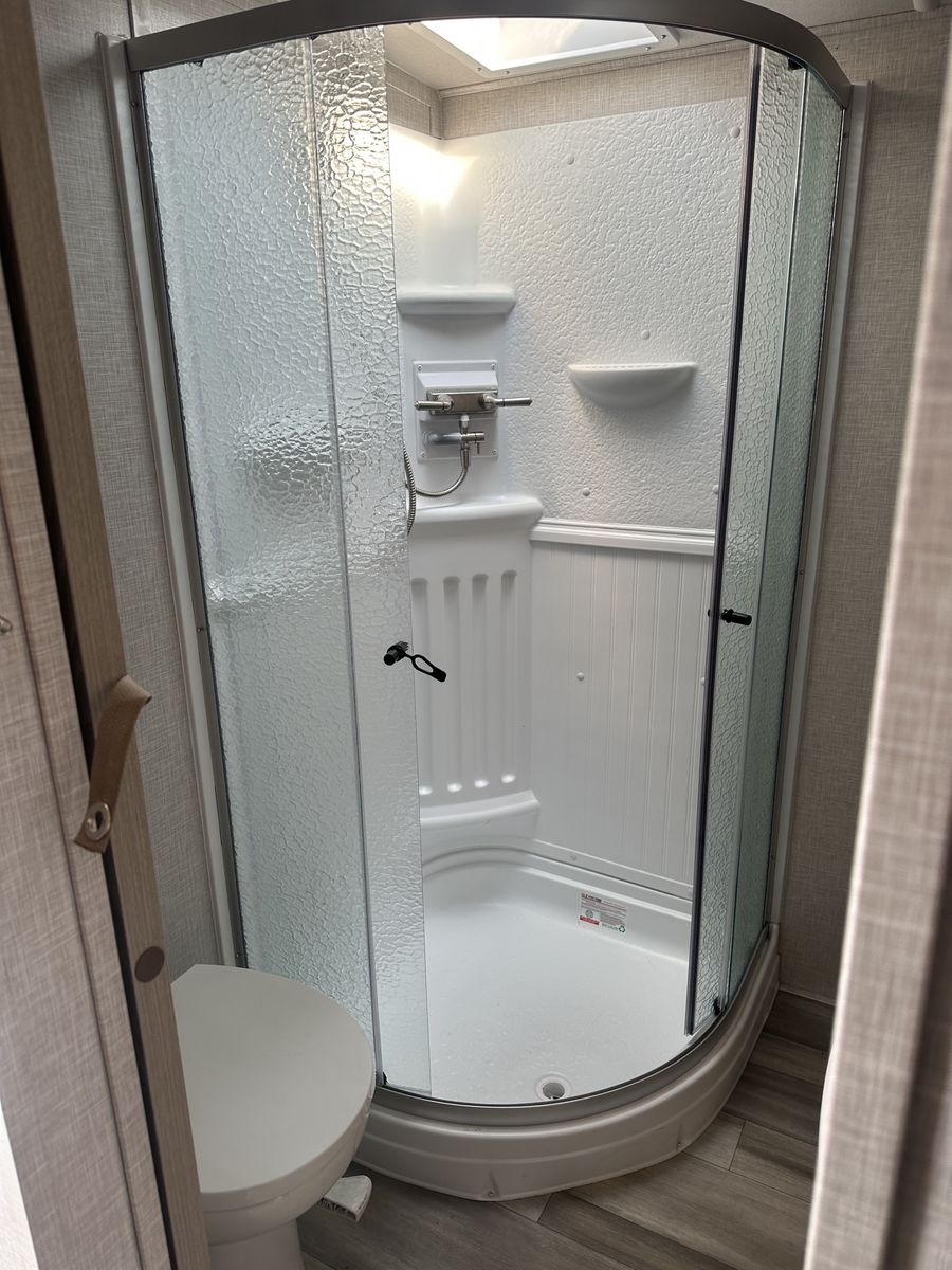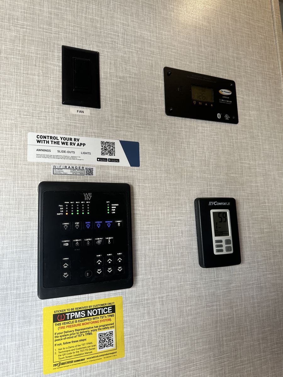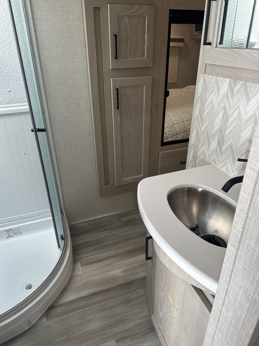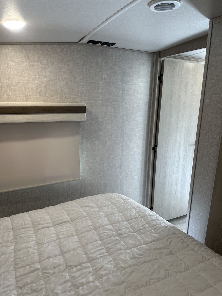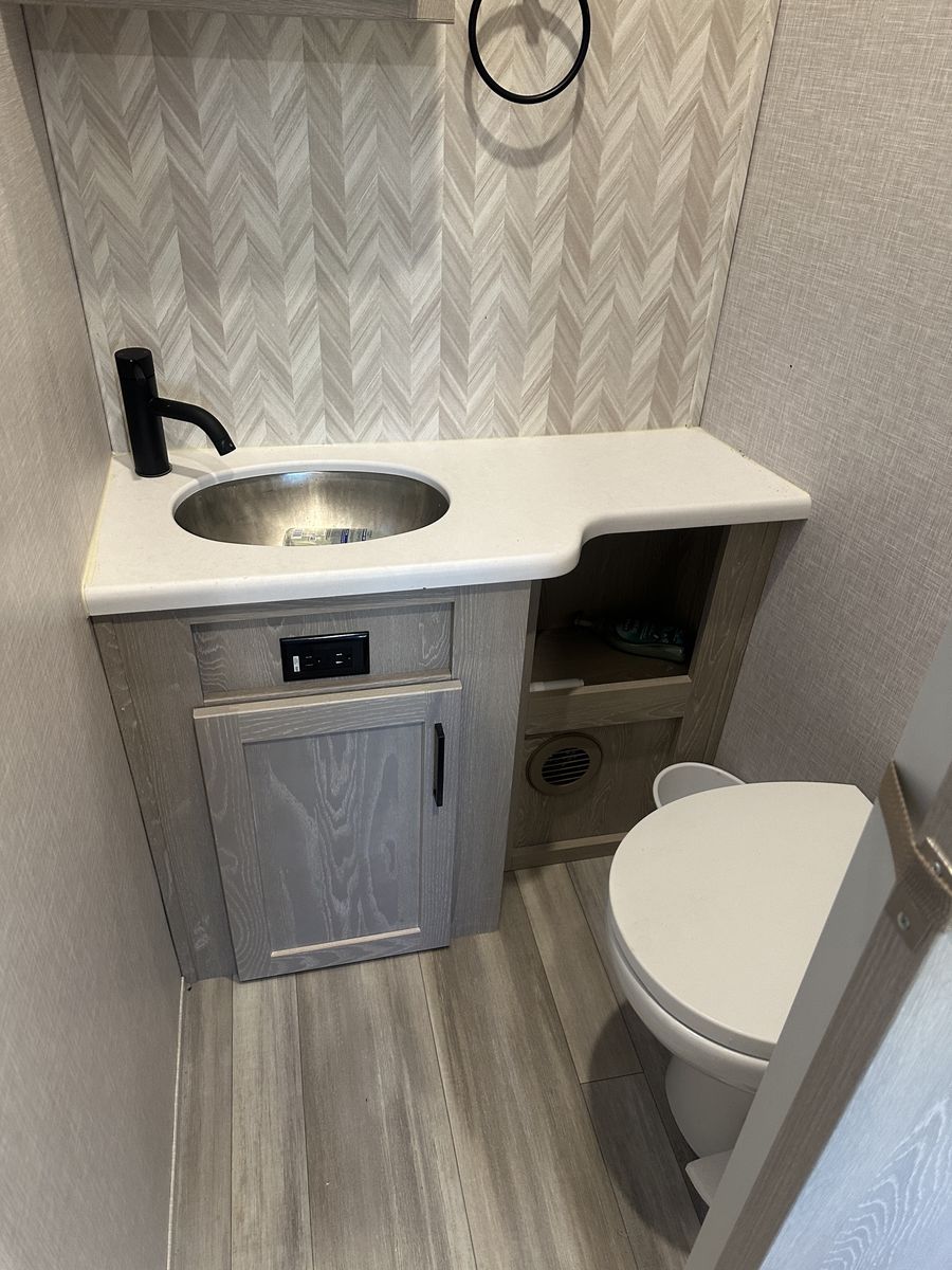 Barely used, only five trips in 3 years, 37 foot, 5th wheel, great storage, bunk beds, auto leveling, outside kitchen with grill, outside speakers, awning, rear storage rack, tow package for doubles, heat, air conditioning, solar panels, 1.5 bathrooms, sleeps 6 comfortably, rear bunkhouse, two tv’s, electric fireplace, lots of space, large fridge, pantry, three pop outs, two reclining chairs in main living space, tire pressure monitoring system.