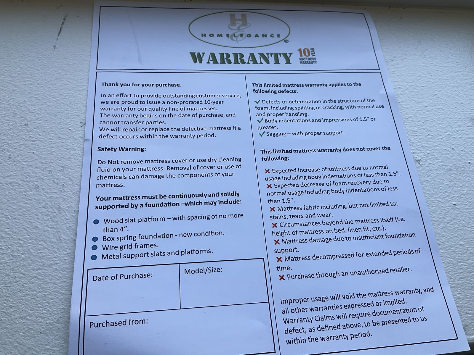 10 year warranty