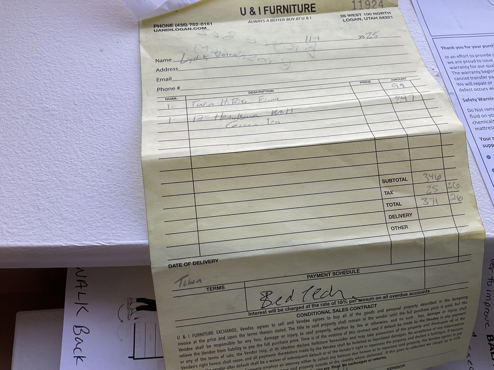 less than 30 days,purchased from a local furniture store