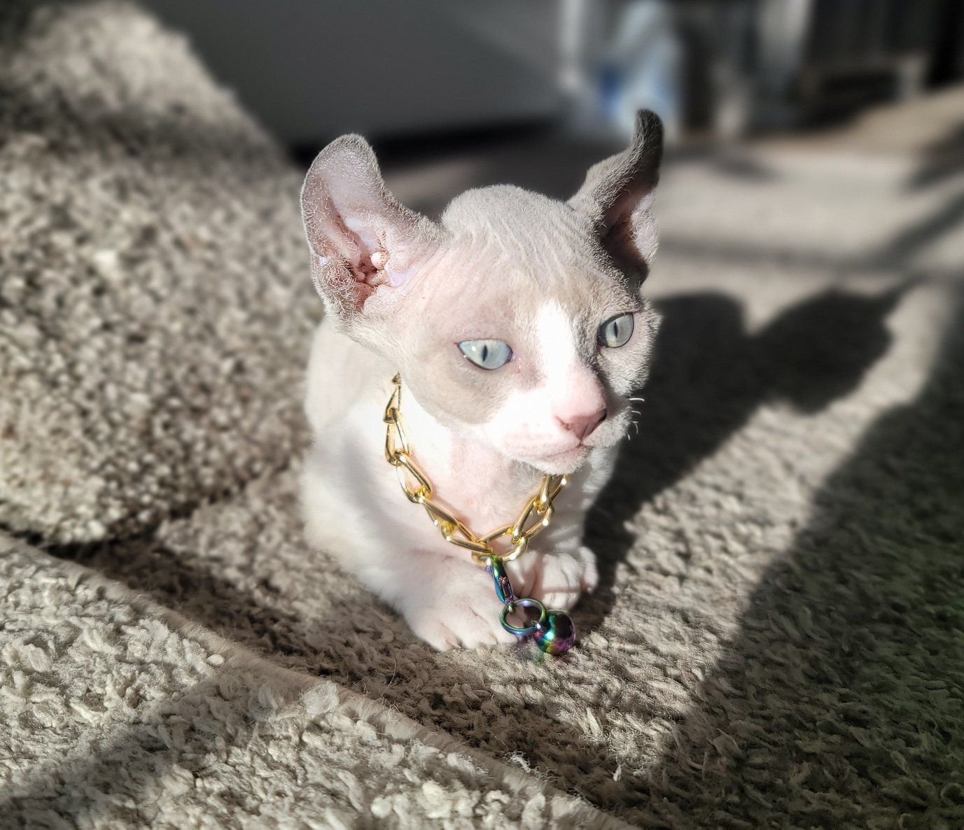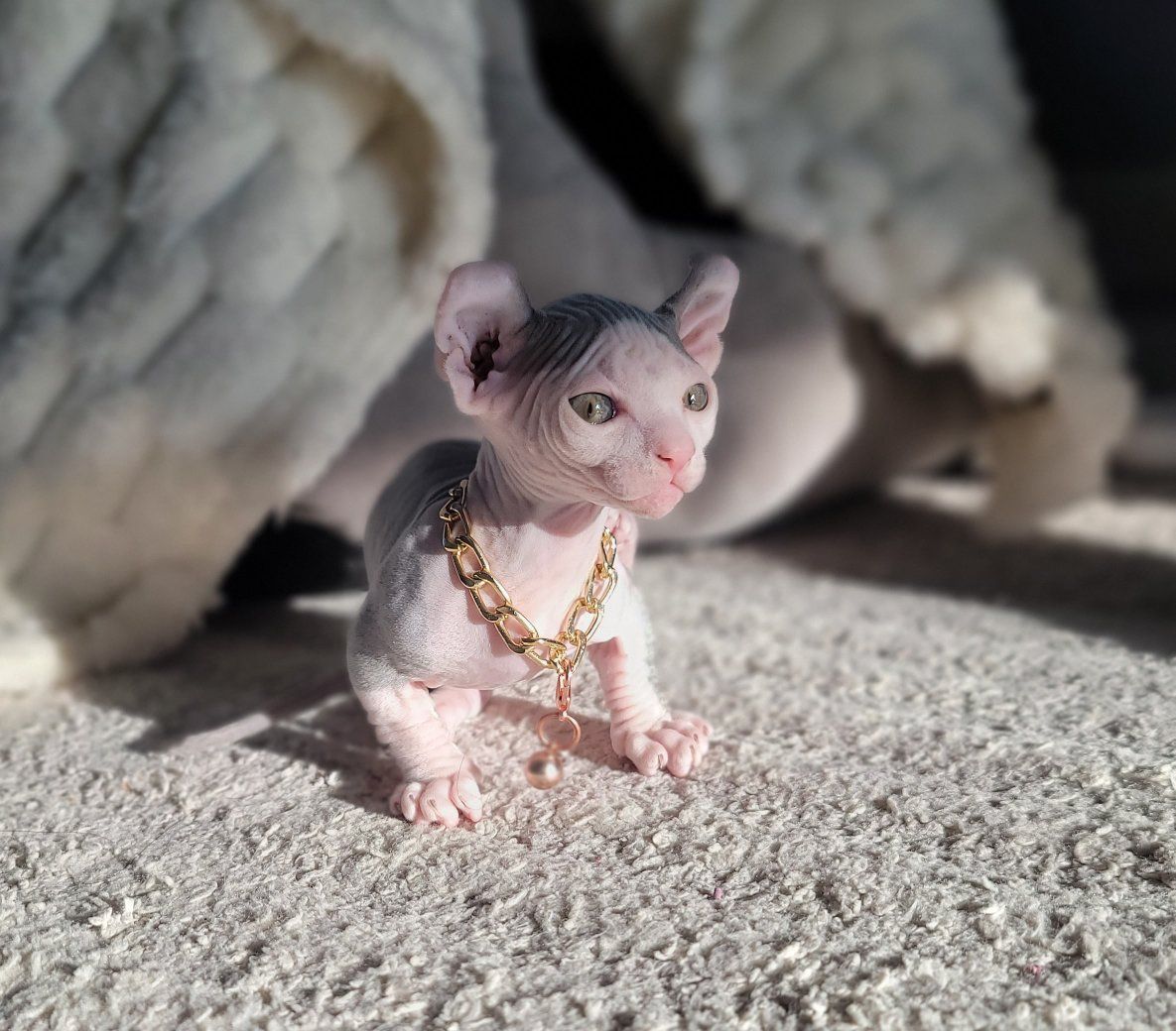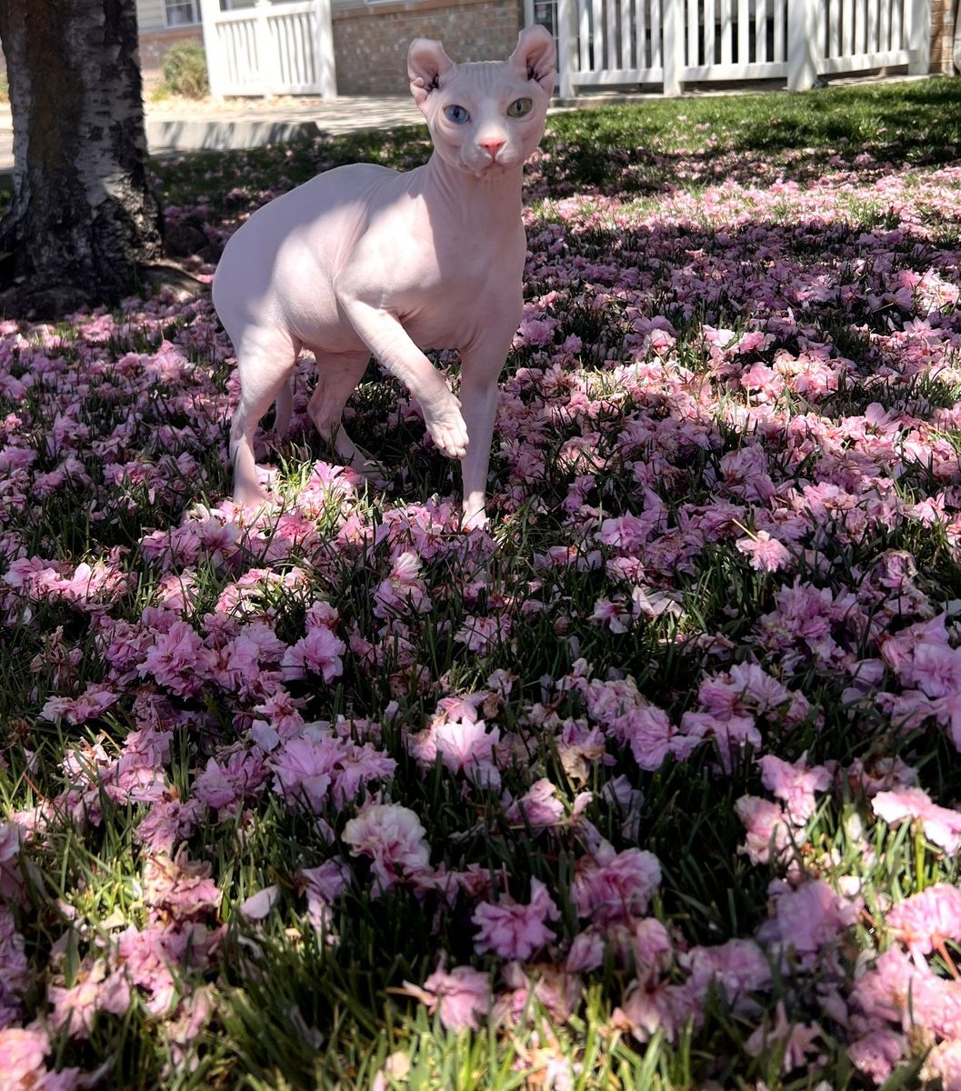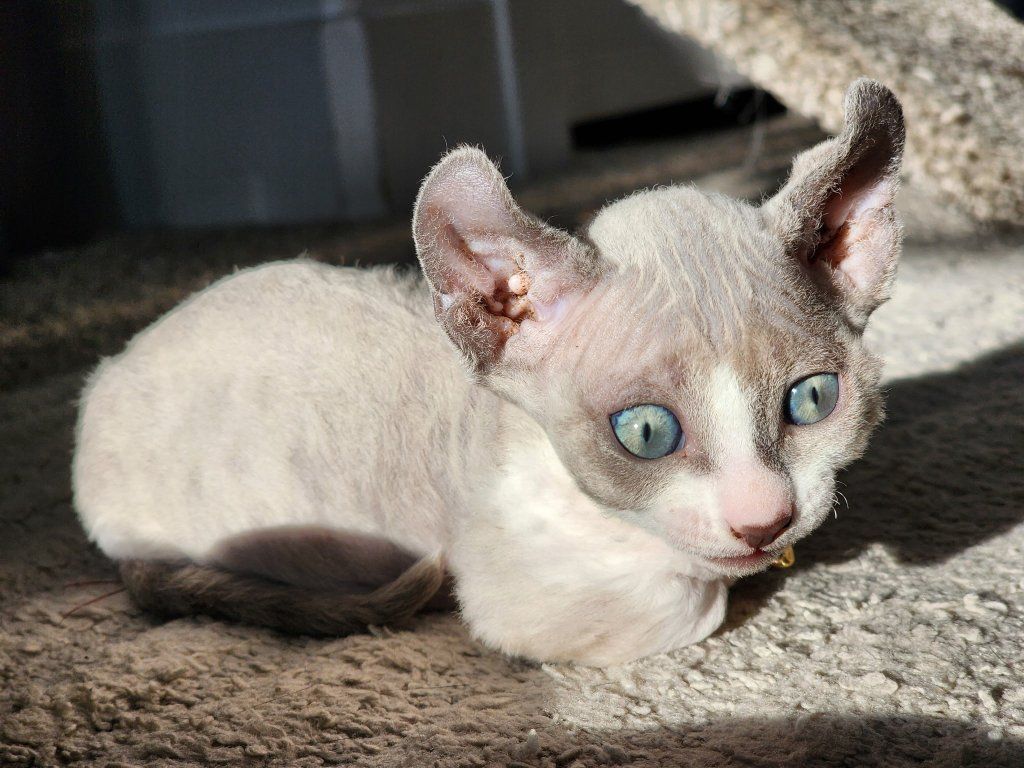 Venmo3 Healthy dwelf sphynx kittens born Feb 19th. Cute curled elf ears, short bambino legs, bicolored naked girl ($2000), pink naked boy($2000), and silver devon rex short wavy haired girl($2500).