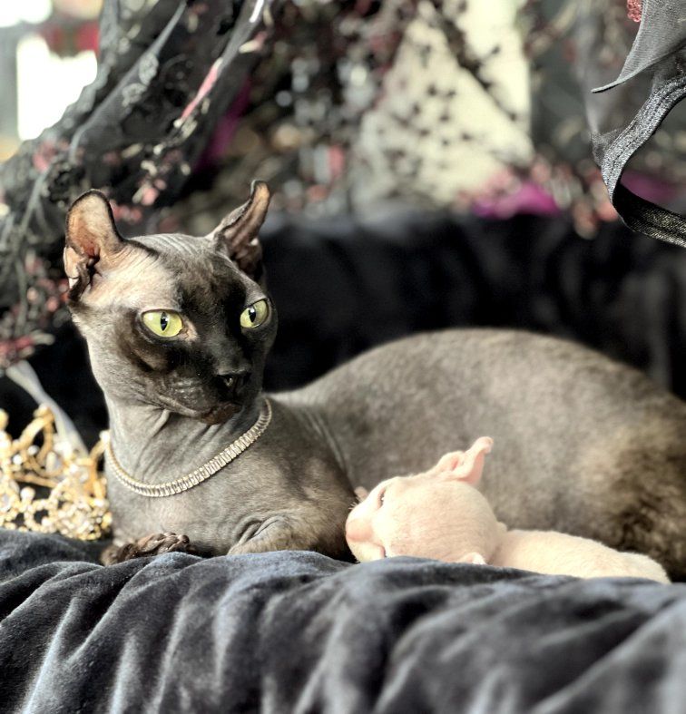 They are super energetic and affectionate! Both parents live at home. Mom is short legged elf ear Dwelf black chocolate mink coat. Dad is hairless Russian long legged heterochromia (odd eye) elf eared pink panther. This is their second litter. Any specific questions on their health, vaccines shots, or papers welcome.