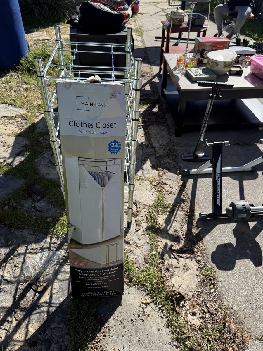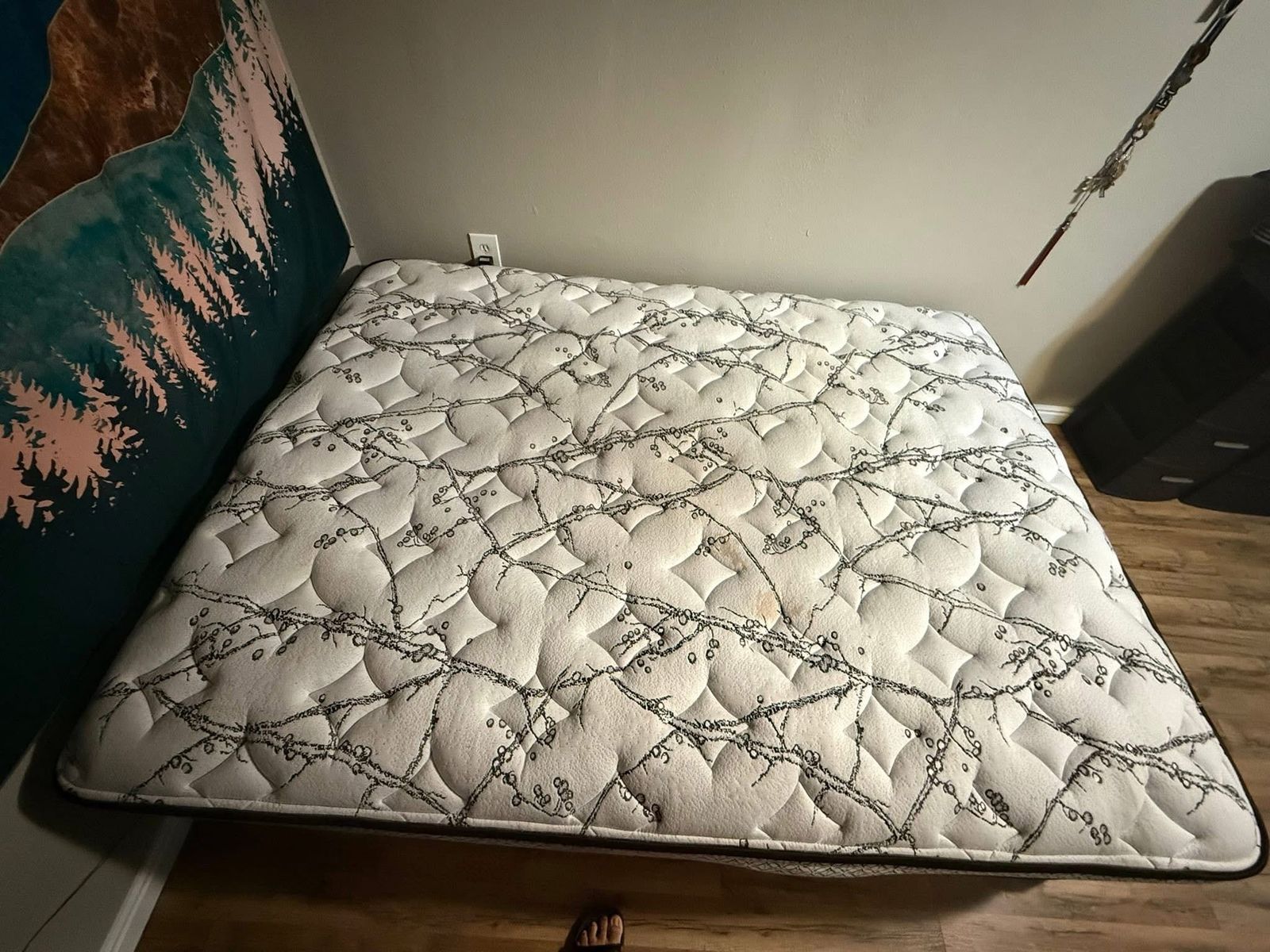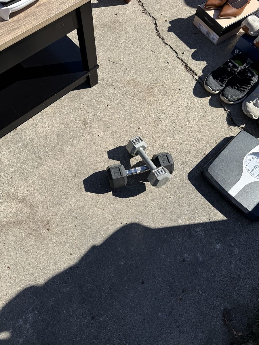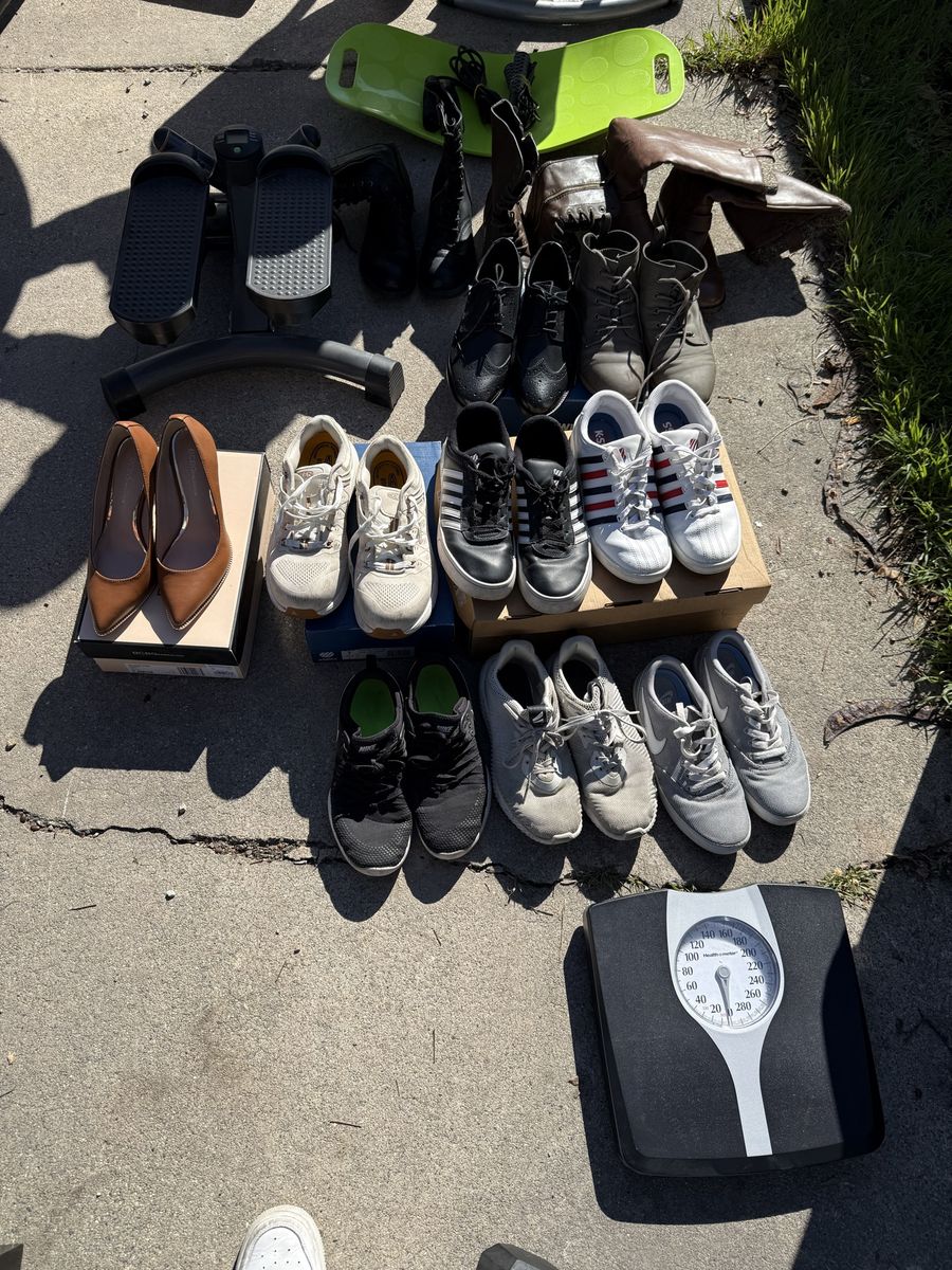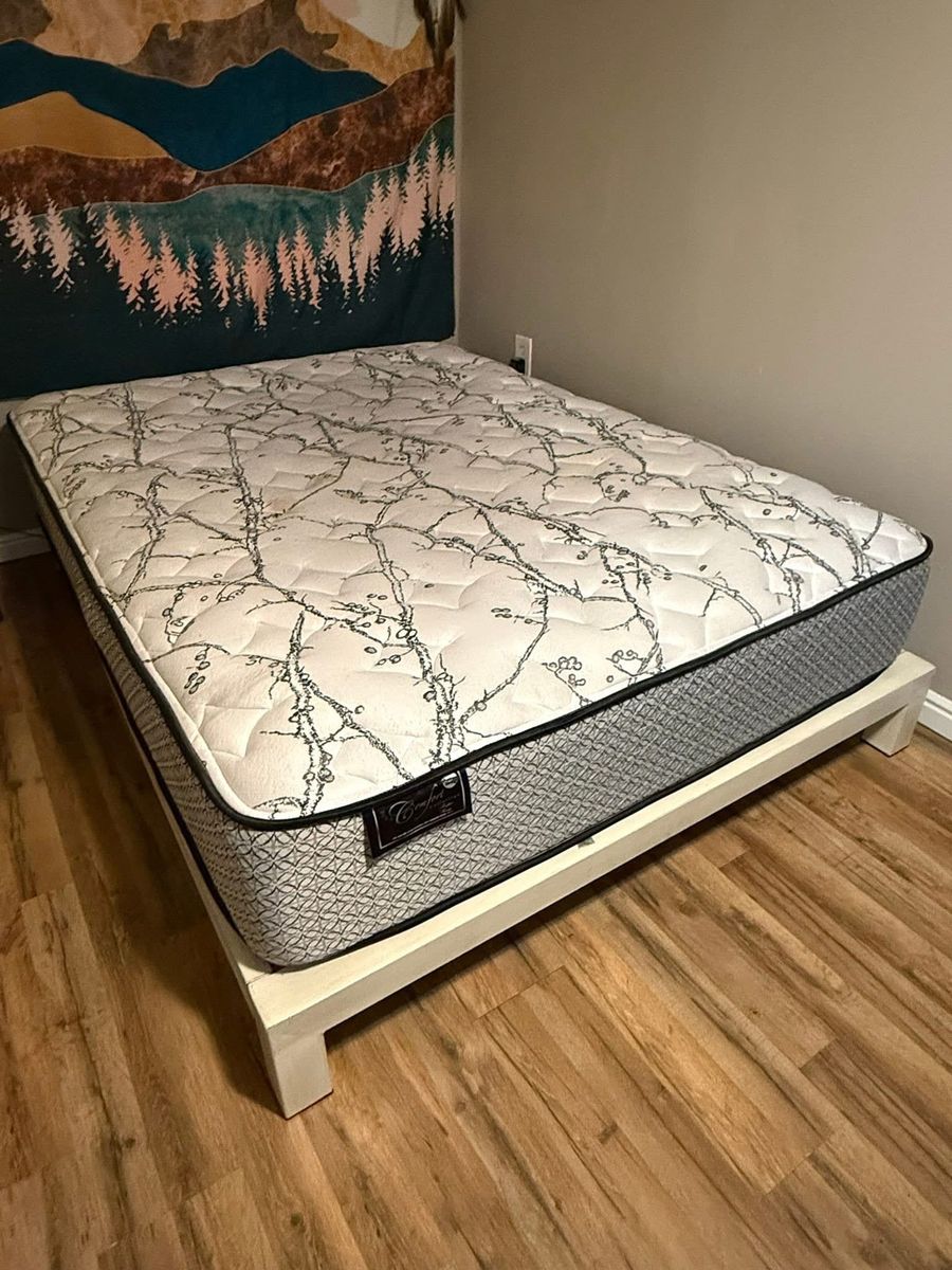 ZelleMiscellaneous items Queen size Mattress Bed frame Table Shoes Wine rack Salt and pepper shakers Tv