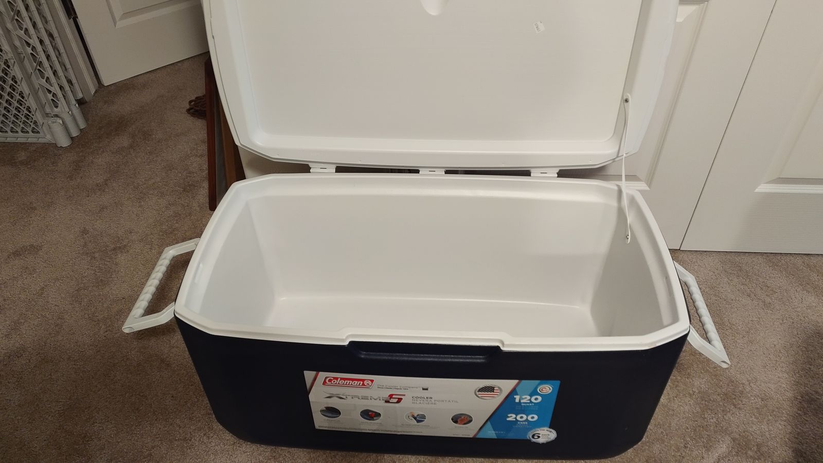 Capacity: It has a 120-quart volume, large enough to hold up to 200 cans.