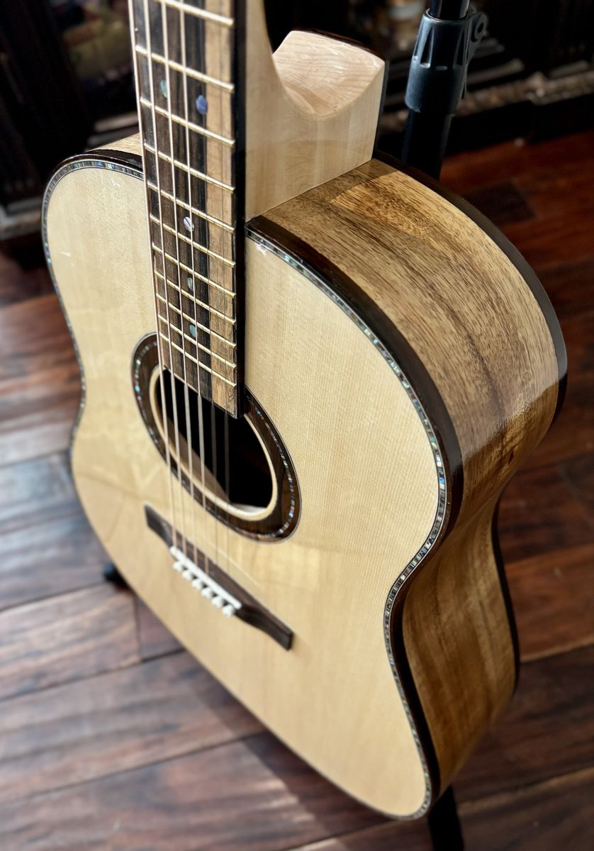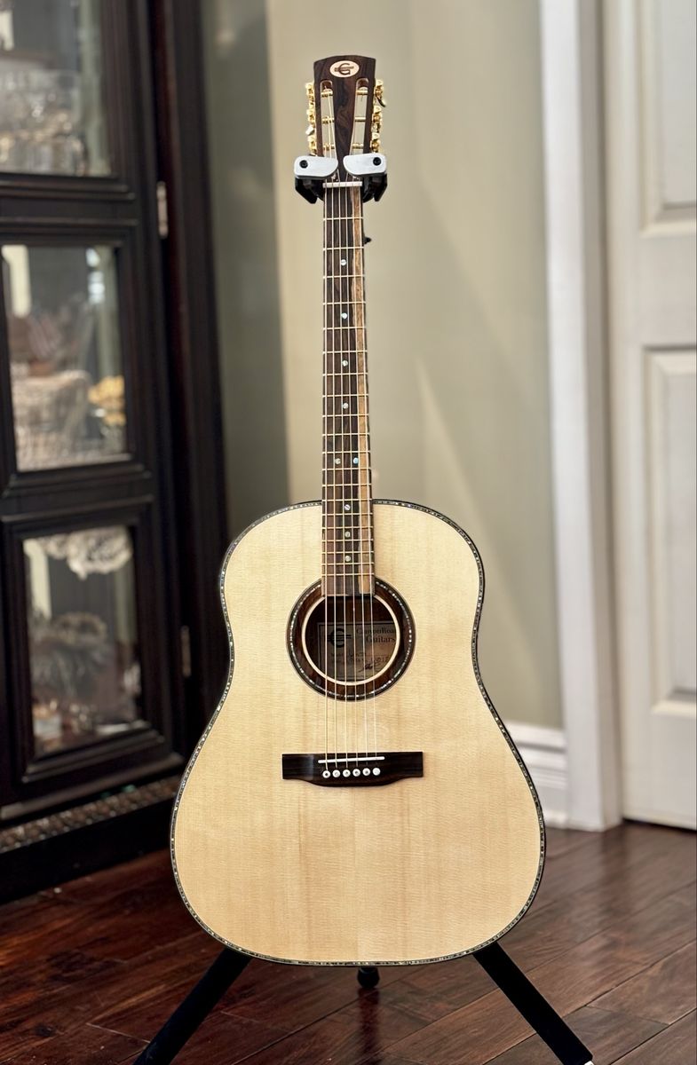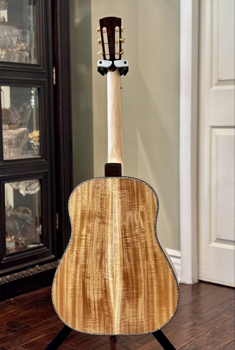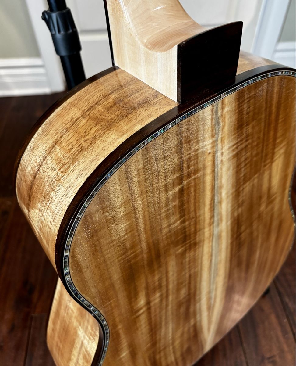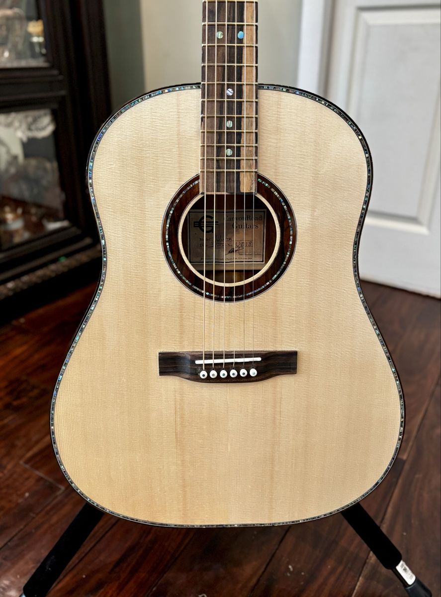 VenmoThis is my Uinta model, which is similar to a J-45. Flamed Golden Acacia back and sides, German Spruce top, Ziricote Bindings, fingerboard and bridge. If you have not played a hand built, hand voiced guitar...you owe it to yourself to do it! Please see my other listings or check out my website at canyonroadguitars.com. Thanks for looking!