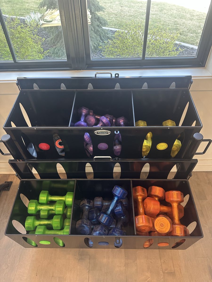 (2) Hampton Fitness 2-tiered, 6-compartment, jelly-bell rack Lockable compartments Excellent condition