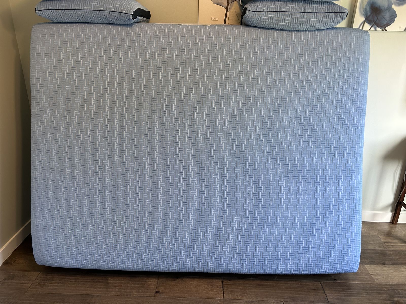ZelleThis mattress has been in a guest room and always had a mattress cover on it. Excellent condition and two blue buritto memory foam pillows are included.