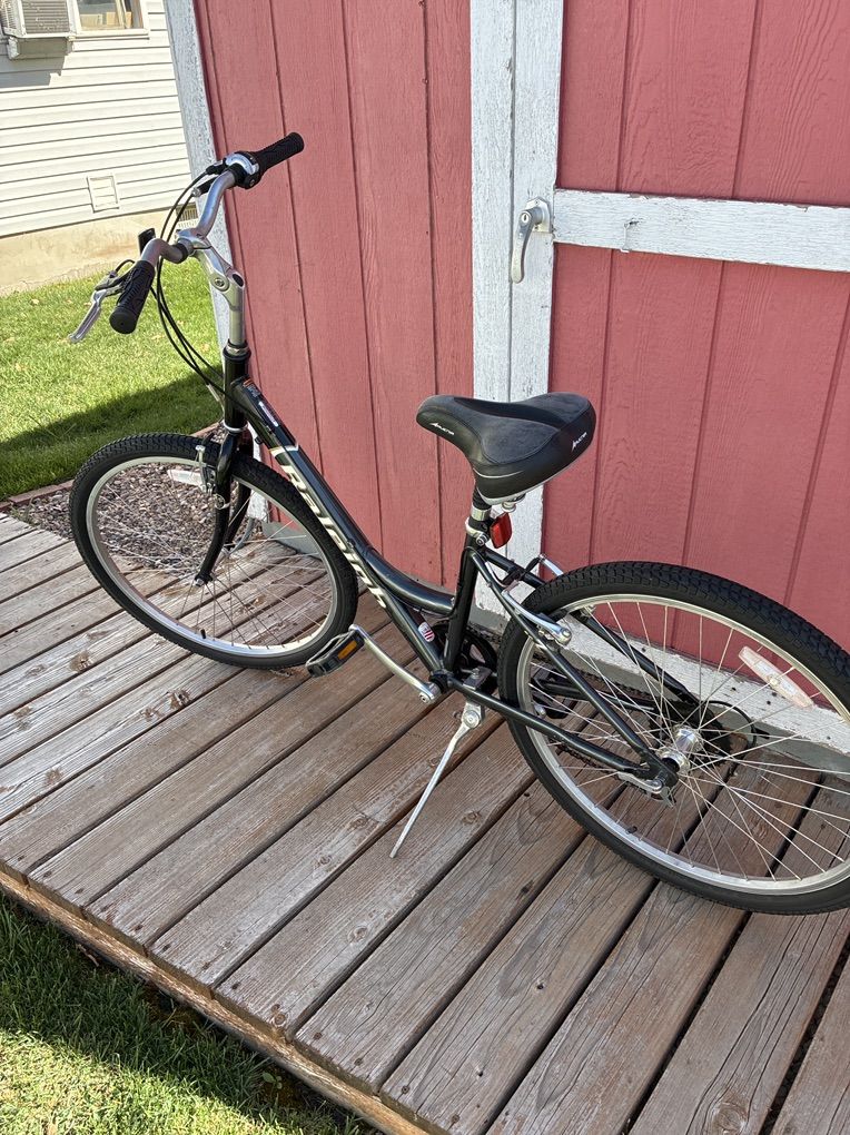 16 inch medium size frame, 26 inch wheels, bike is in excellent condition and is tuned and ready to ride