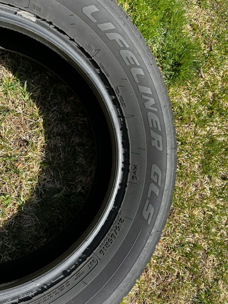 215/65 16. All season (M+S) tire in excellent condition with plenty of tread life remaining. Was only used for a short time.