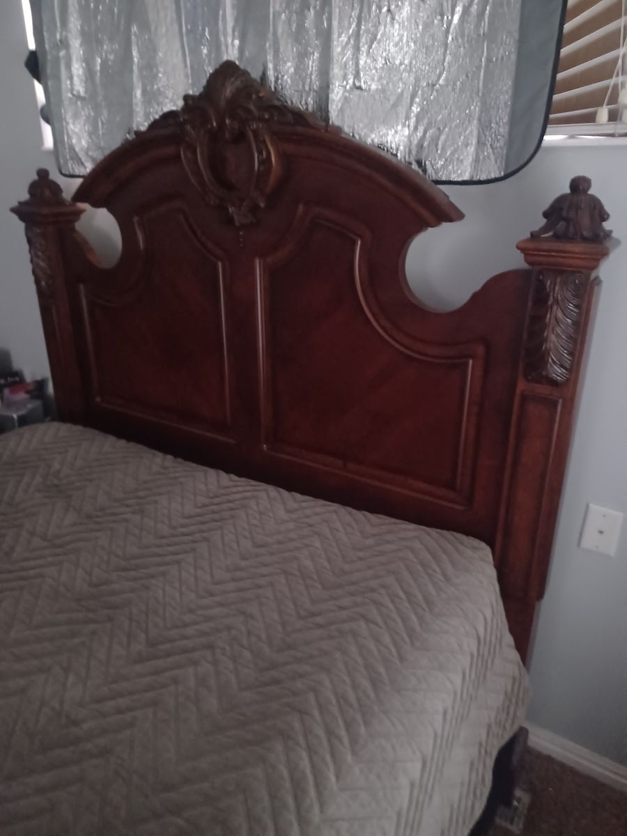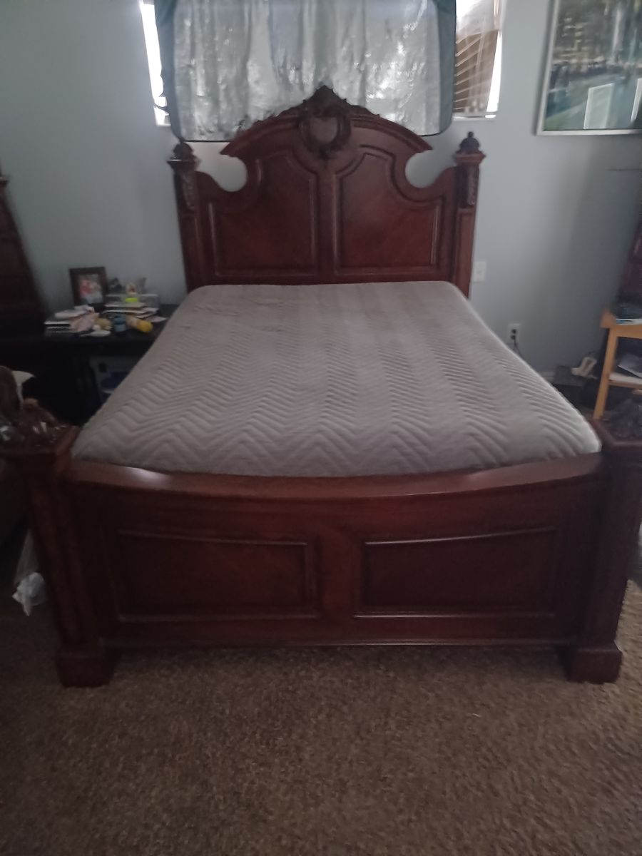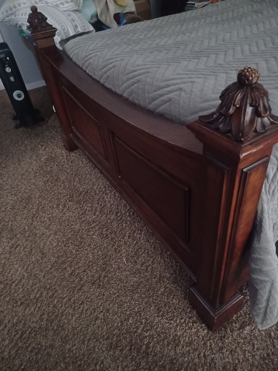 Beautiful queen size bed. Bought this from R.C.Willey. This is a very well made bed "Heavy". It's in very good condition. Selling due to it no longer goes with our decor. Comes with the box spring but not the mattress.